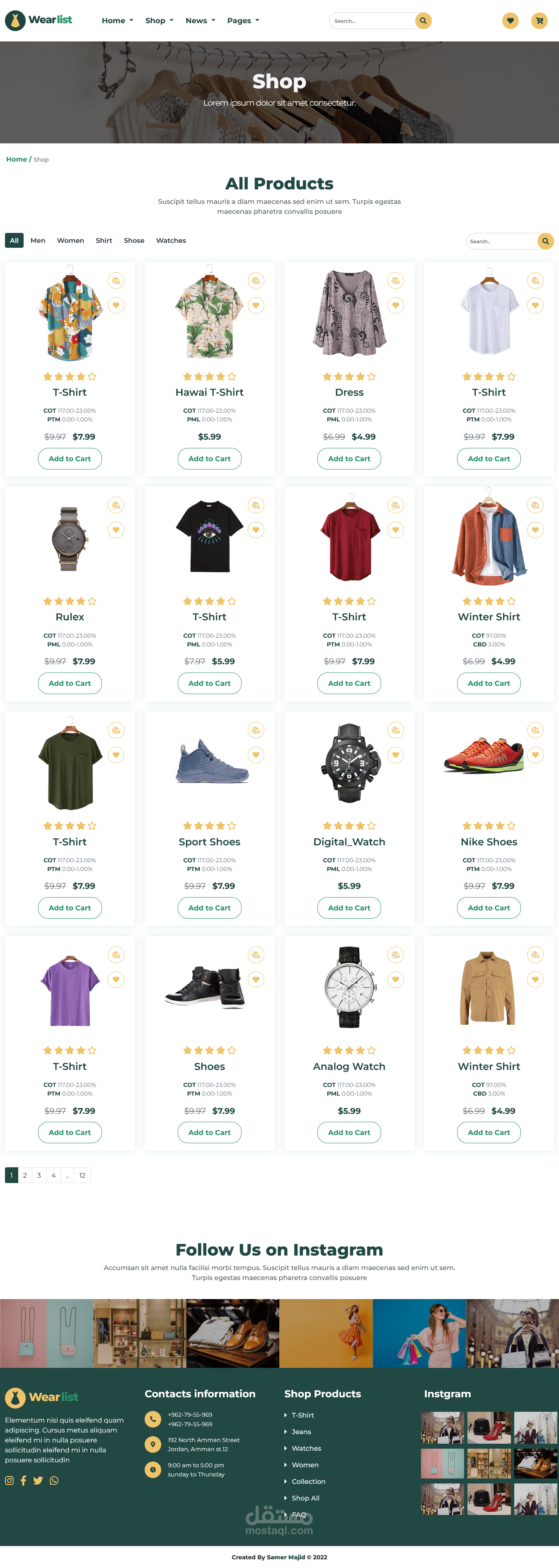تطوير وبرمجة واجهة أمامية لمتجر إلكتروني لبيع الملابس , بواقع أكثر من 10 صفحات .