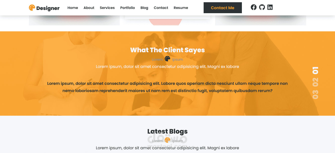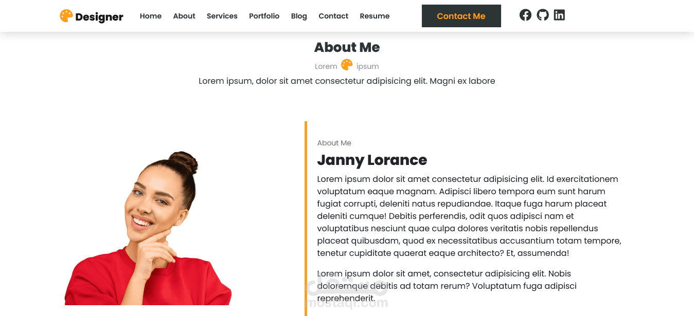 هو عبارة عن موقع من صفحة واحدة , تحتوي على نبذة عن الشخص , الخبرات وآخر الأعمال , الخدمات التي يقدمها تقيمات ومراجعات من الزبائن , آخر الاخبار, عملية التواصل .