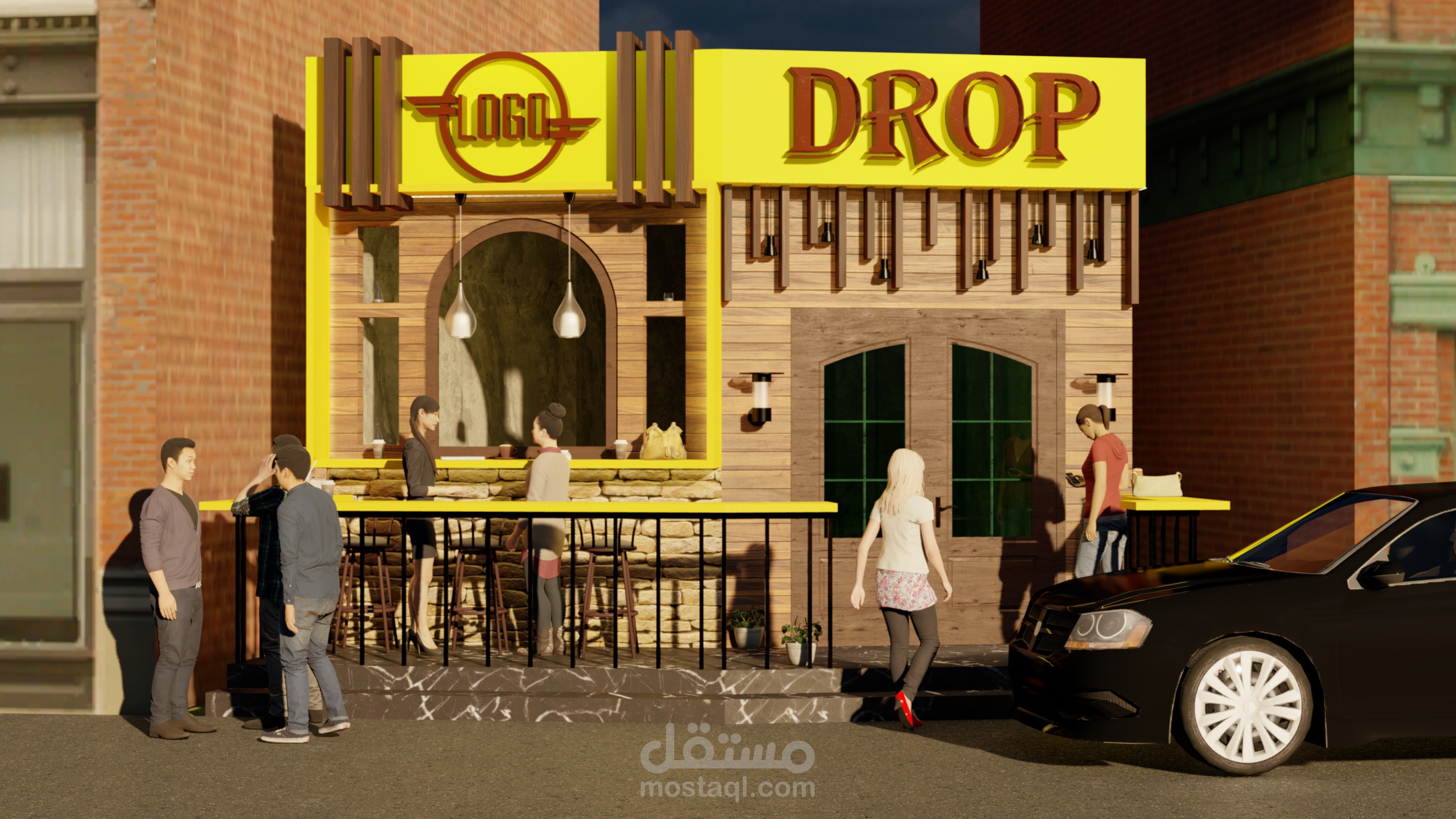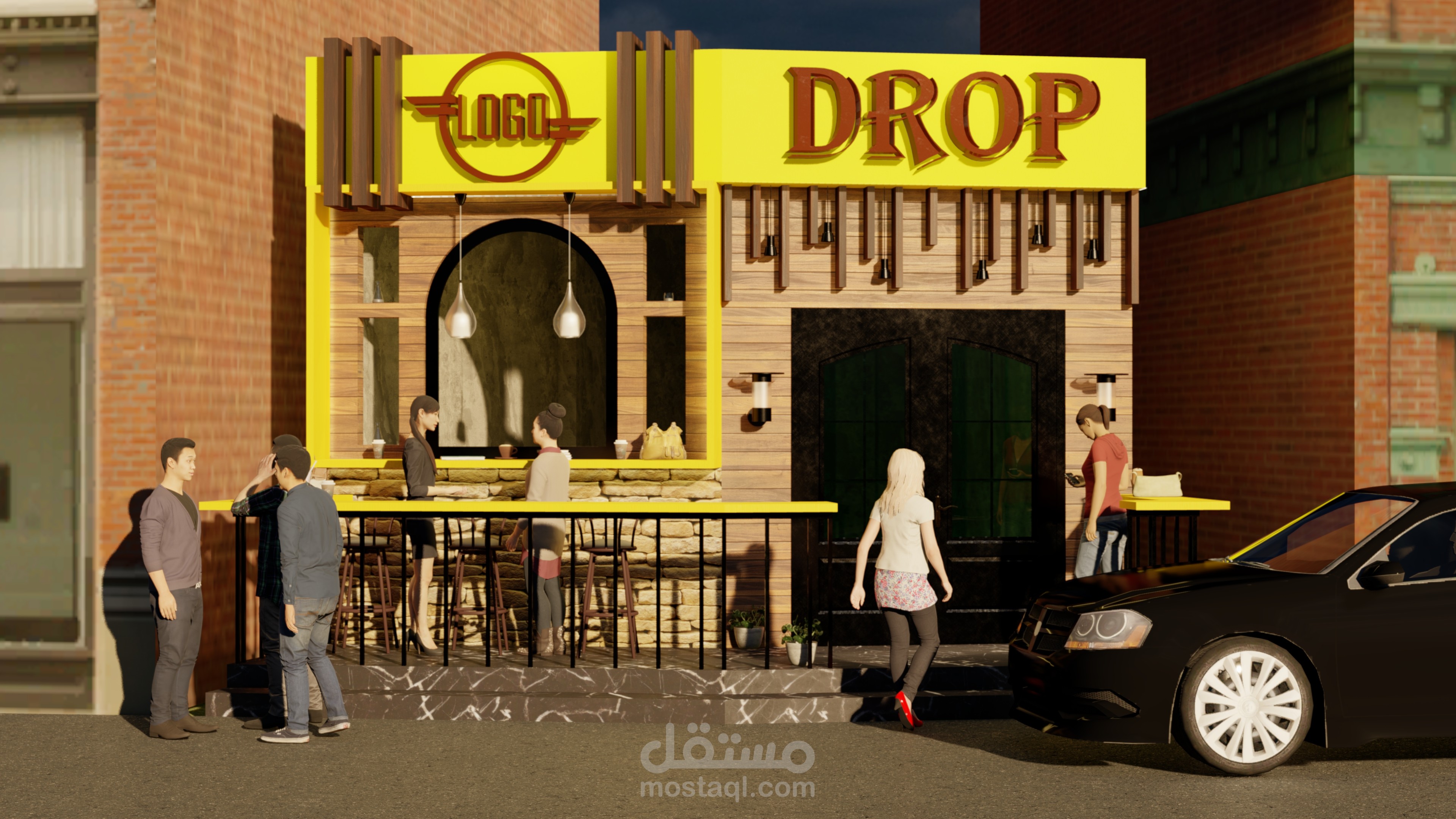 Design for Coffee Shop Elevation using the brand identity colours, materials and vision.