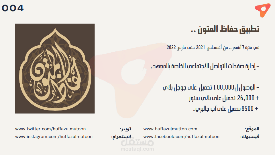 الوصول ل100.000 تحميل لتطبيق حفاظ المتون؛ بسعر تحميلة 20 سنت فقط...