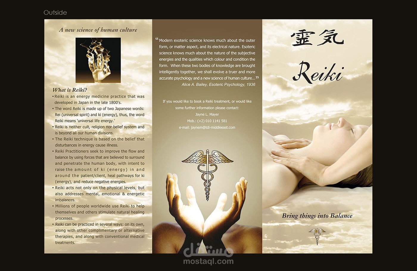 بروشور عن منتج علاجي لراحة الجسم من متاعب التوتر والإجهاد الجسماني. العمل ٤ لون مقاس A4 مفتوح.