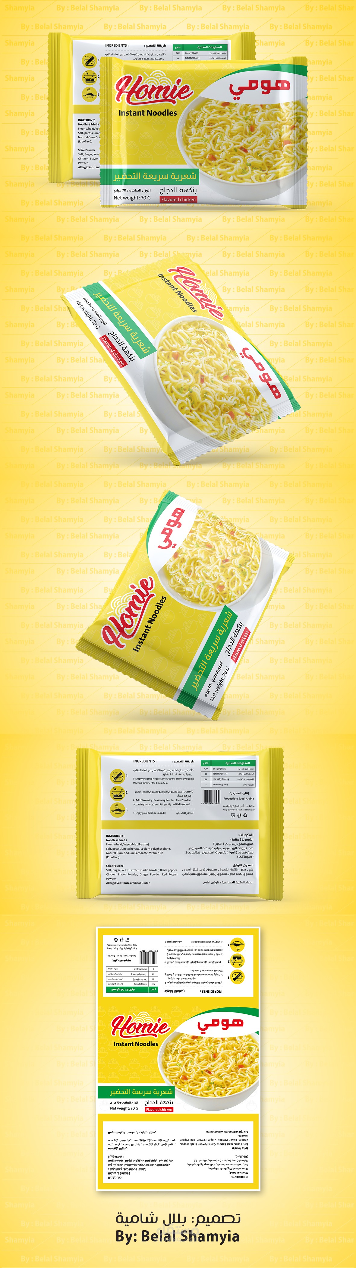 تصميم وتغليف كيس منتج شعيرية سريعة التحضير ( أندومي ) لزبون في المملكة العربية السعودية.