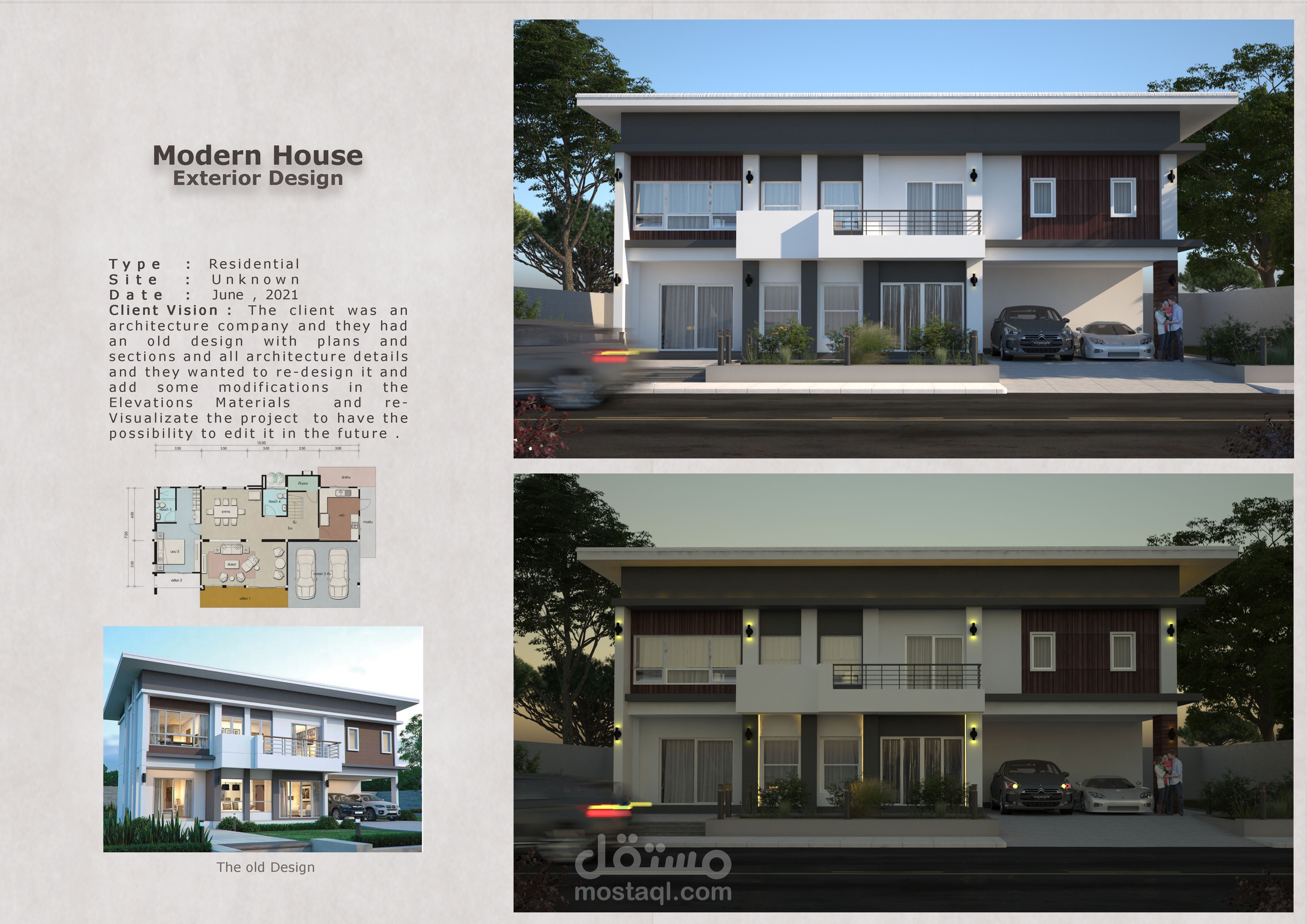 The client was an architecture company and they had an old design with plans and sections and all architecture details and they wanted to re-design it and add some modifications in the Elevations Materials and re- Visualizate the project to have the possibility to edit it in the future .