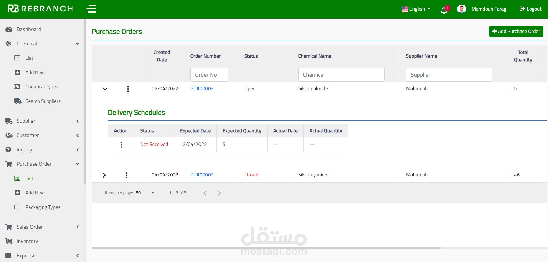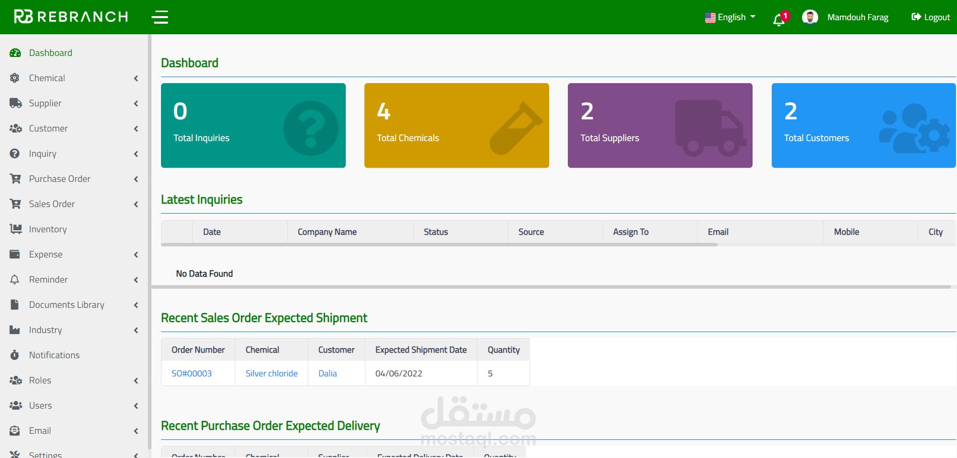 لقد قمت بإعداد نظام إدارة لجميع المواد الكيميائية والموردين والعملاء والمواد الكيميائية الخاصة بهم ، بالإضافة إلى الاستفسارات وأوامر شراء الموردين وأوامر مبيعات العملاء والمخزون وجميع أوراق العمل الأخرى. يمكنك استخدام خيار التصفية المتقدم للبحث عن كل مورد كيميائي وعميل ، أو يمكنك البحث عن الموردين والعملاء بناءً على المواد الكيميائية.