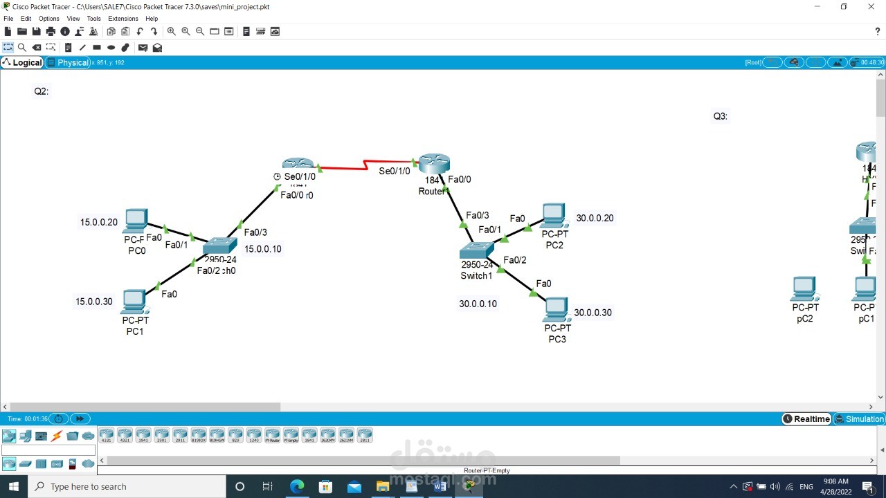 تنفيذ شبكات حاسوبيه باستخدام cisco packet tracer