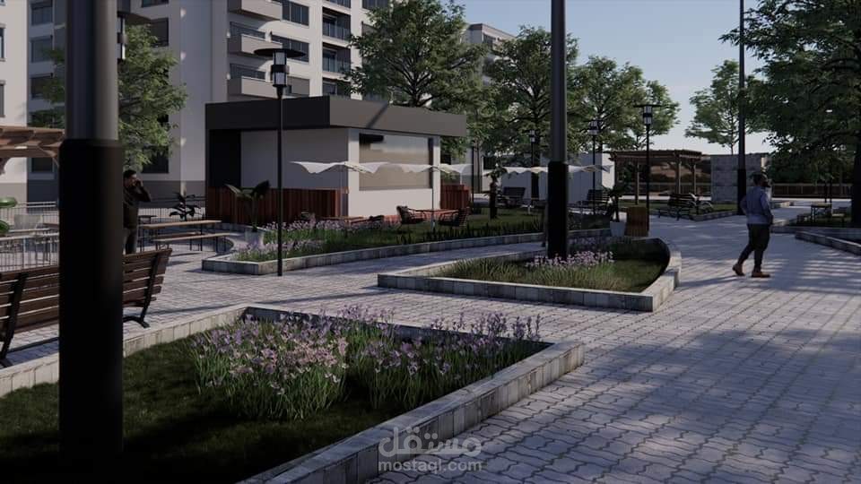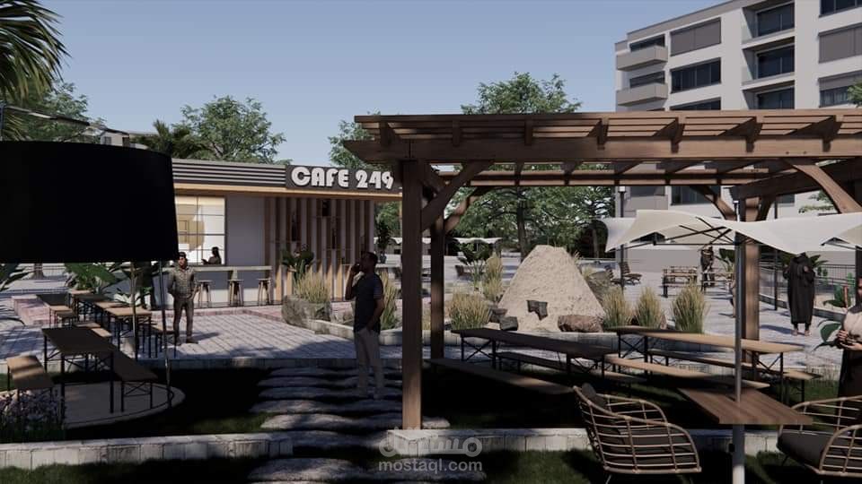 Open Cafe |Restaurant هو عباره عن كافيه يطل على شارع رئيسي، يمنع فيه البناء المغلق..