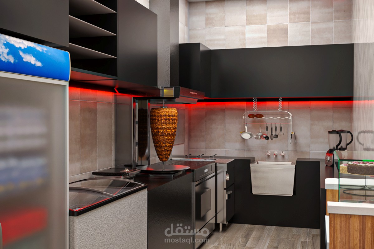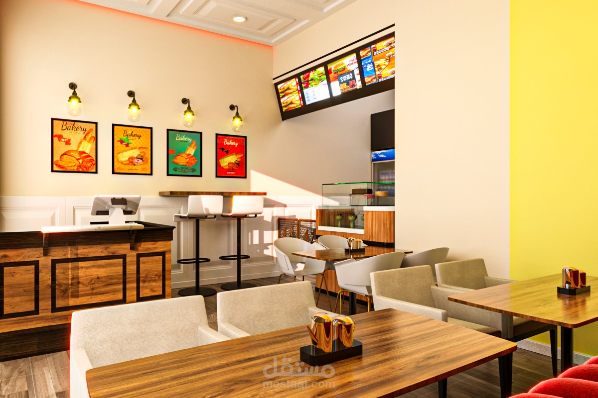 واتباع الاستايل العصري و دمج الالوان الخاصه بشعار المطعم..