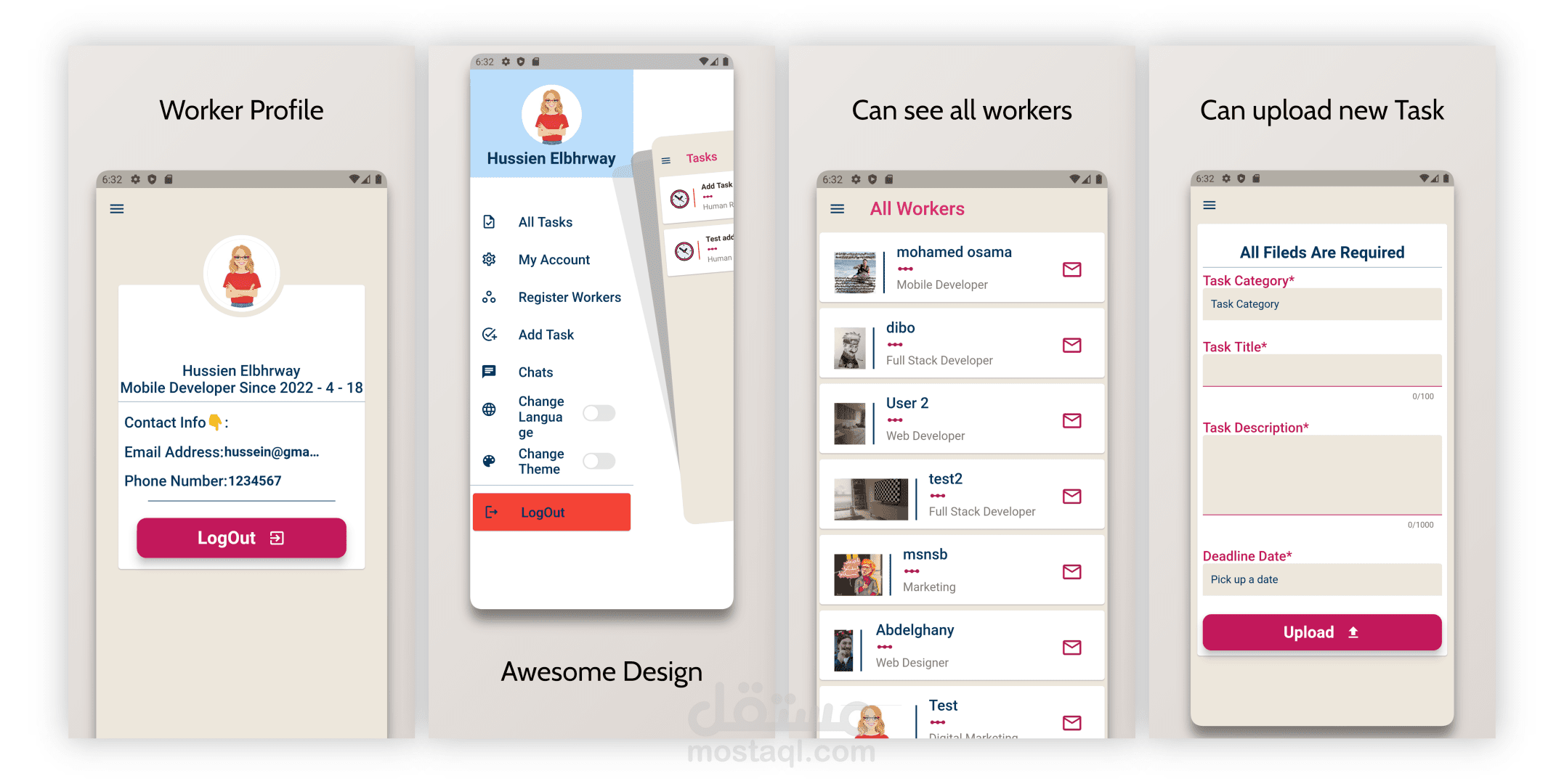 -Can upload, Delete and change task status