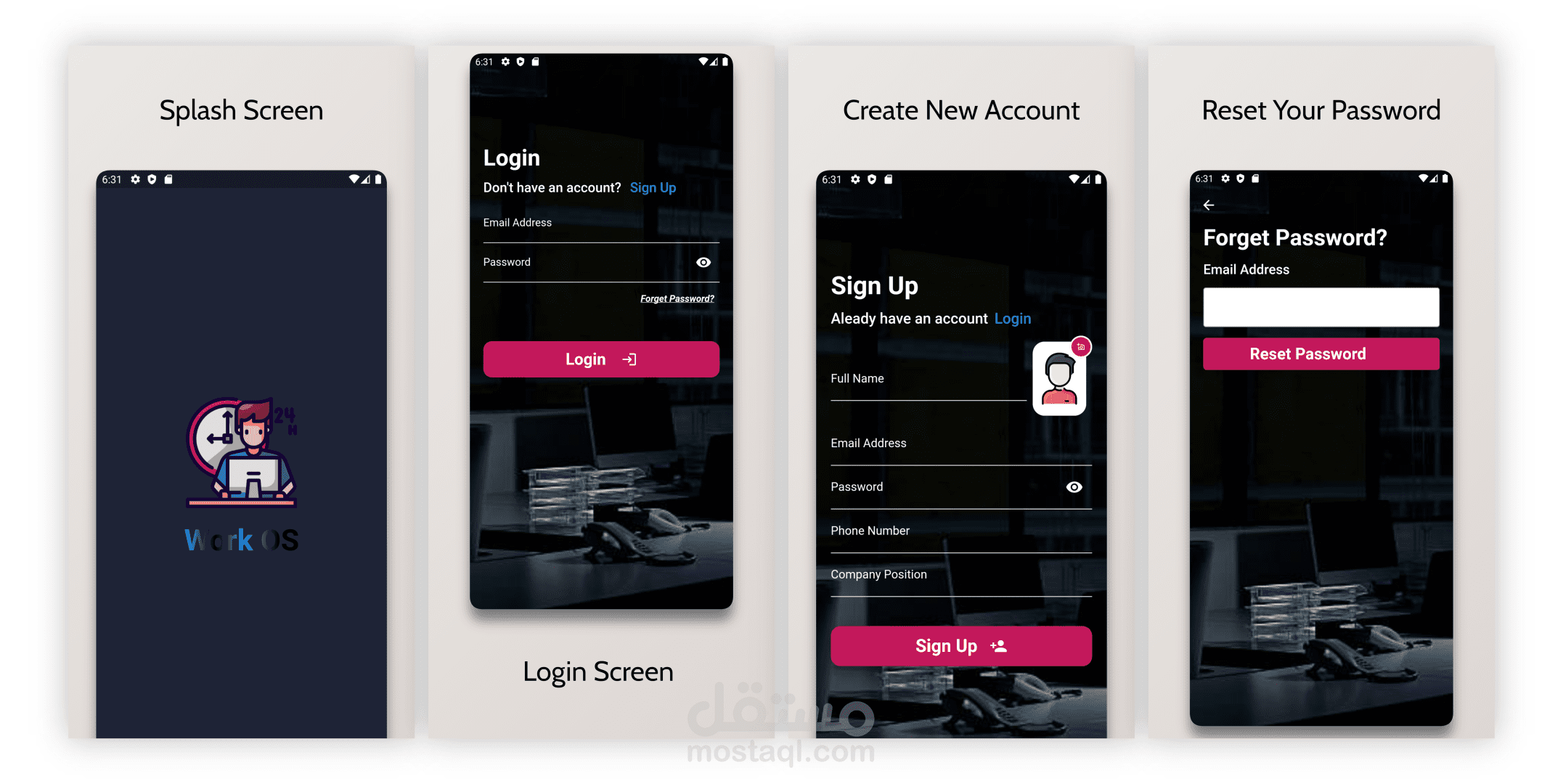 Work OS, a Flutter project, is a social media app used in a company with a firebase backend