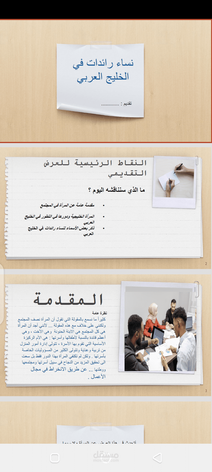 عرض تقديمي بعنوان نساء رائدات في الخليج العربي مع الإلتزام بحصرية المحتوى
