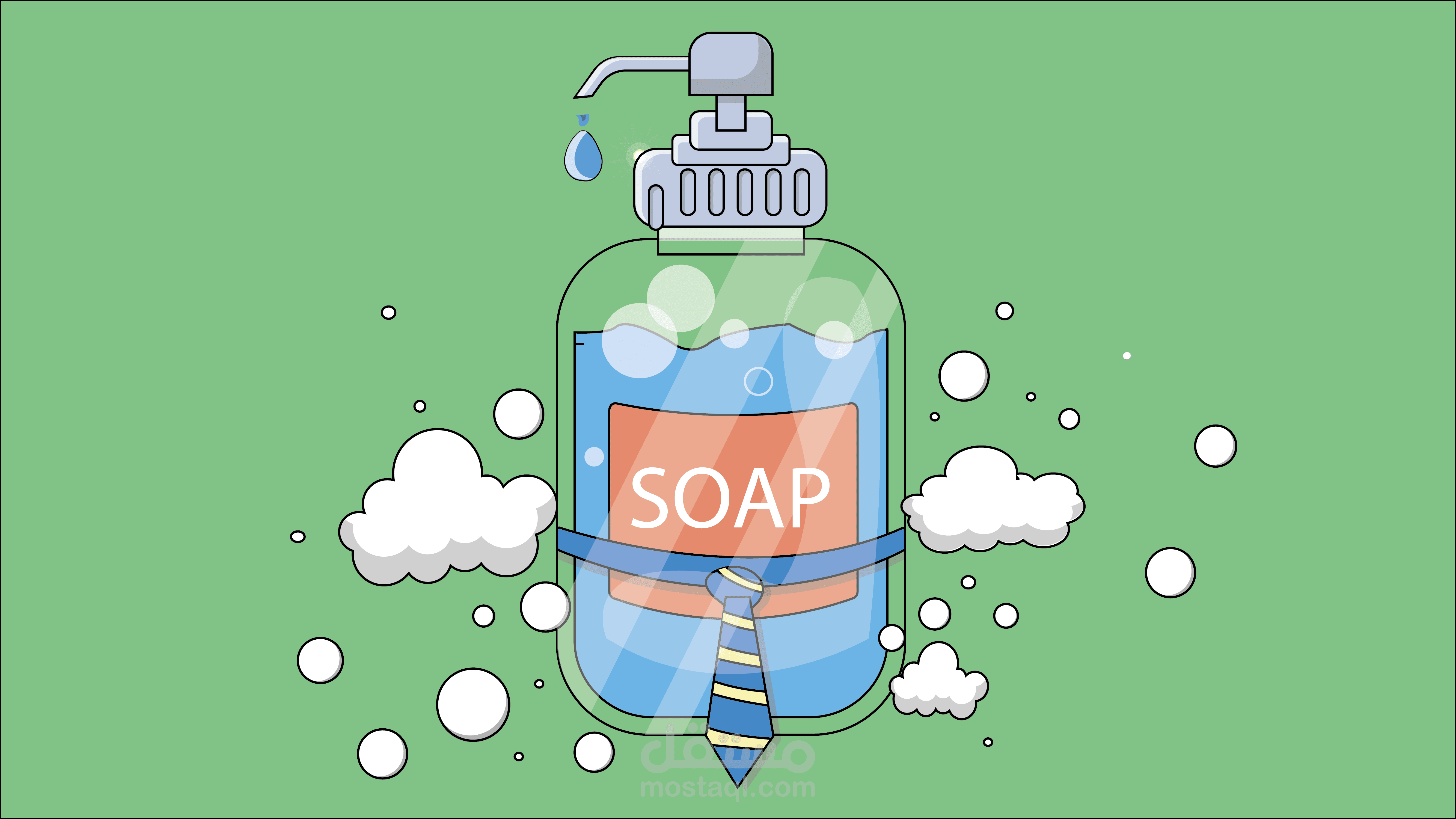صابون للغسيل مع تفاصيل الرغاوى باستخدام برنامج illustrator.