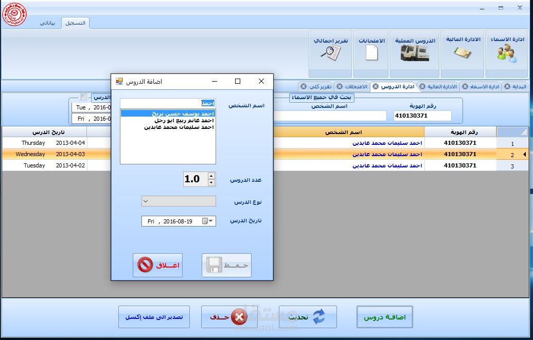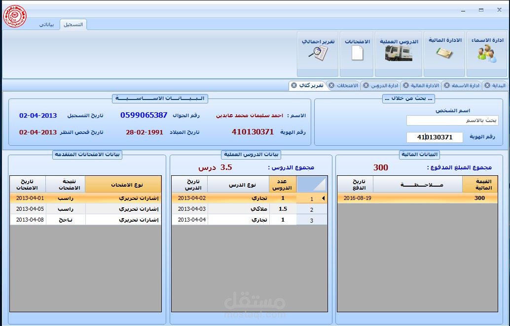 يقوم بتسجيل بيانات طلاب المدرسة وبيانات الدفعات المالية وبيانات تقديم الامتحانات ونتائجها وبيانات الدورس