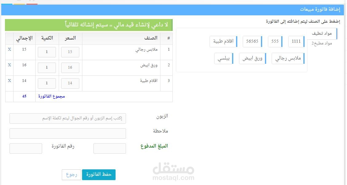 يحتوي على :: 1-إدارة العملاء 2- إدارة التجار 3-فواتير بيع 4-فواتير مشتريات 5-تقررير 6-حركات مالية