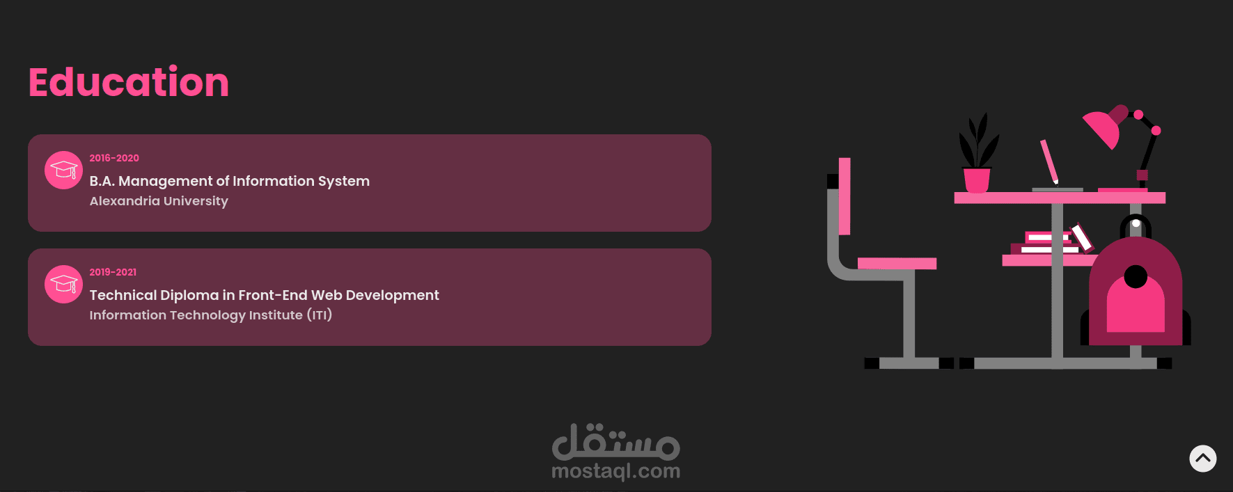يحتوي الموقع علي عينات من أعمالي كما يحتوي علي مهاراتي وخبراتي