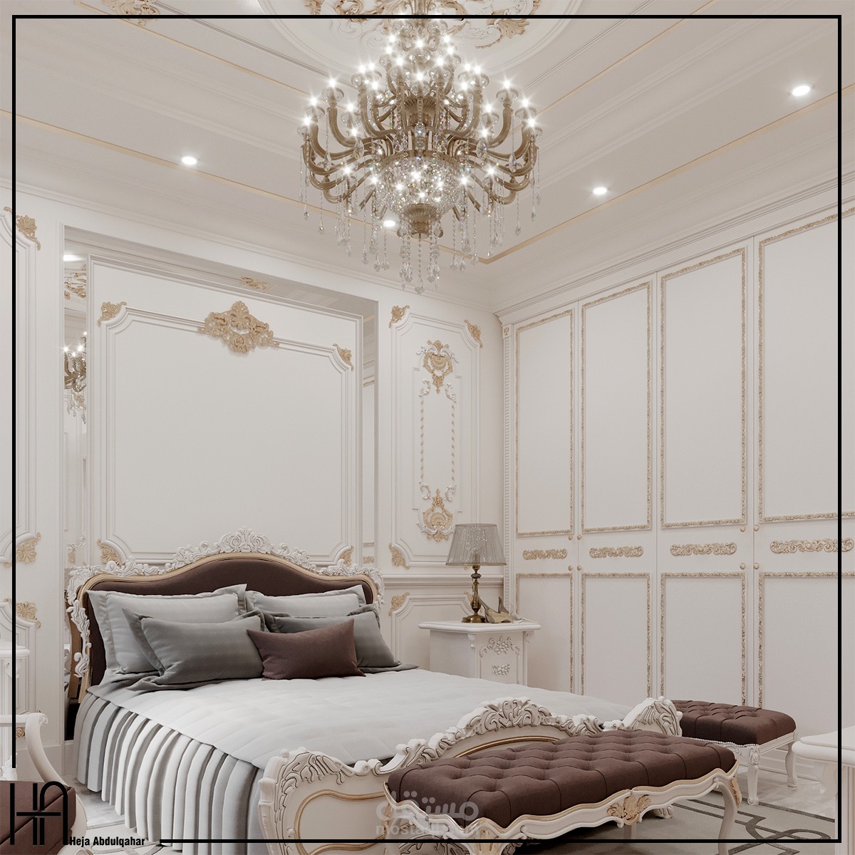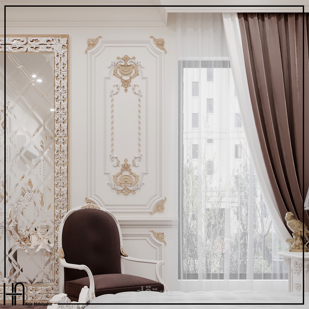 التصميم الداخلي لغرفة نوم - ماستر بطراز نيو - كلاسيك على مساحة 25 متر مربع.