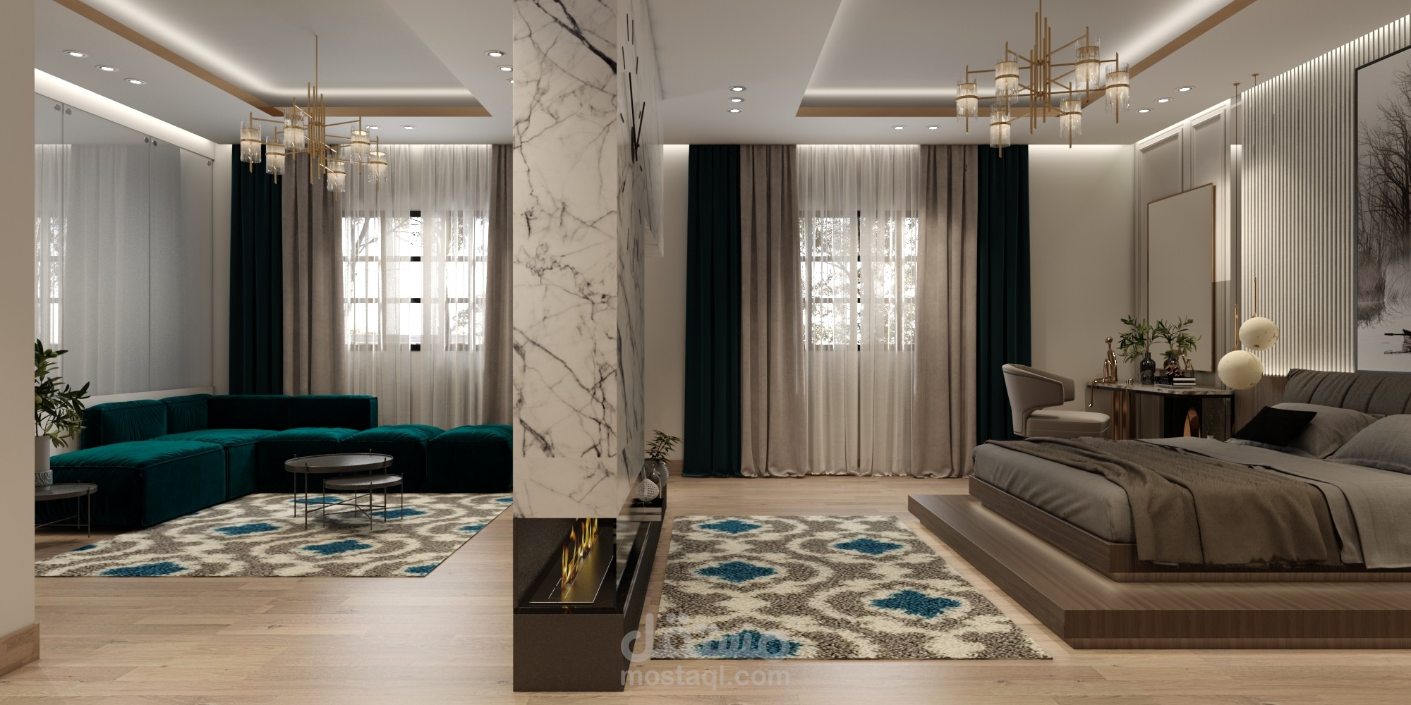 Master Bedroom With Living Room