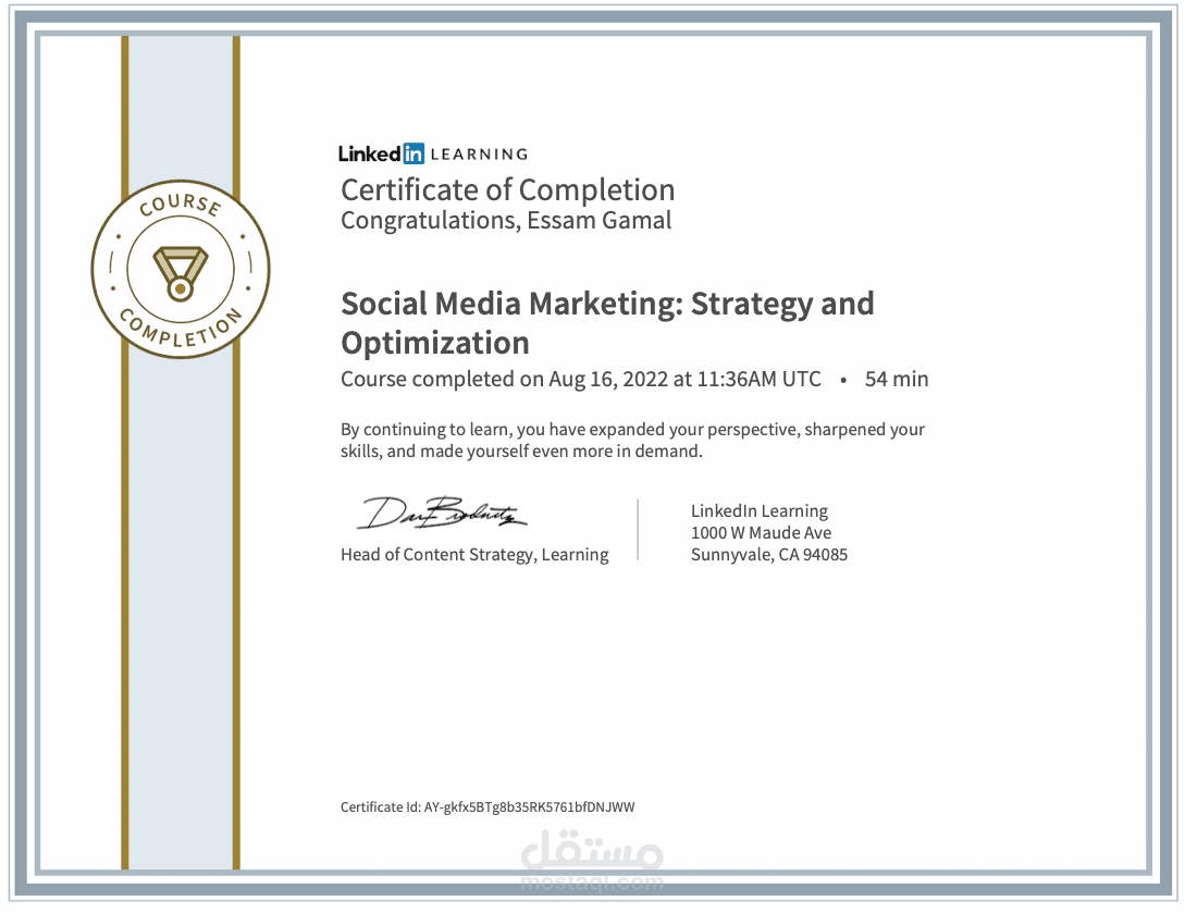 ٤- شهادة لينكدن استراتيجيات التسويق عبر منصات التواصل الاجتماعي.