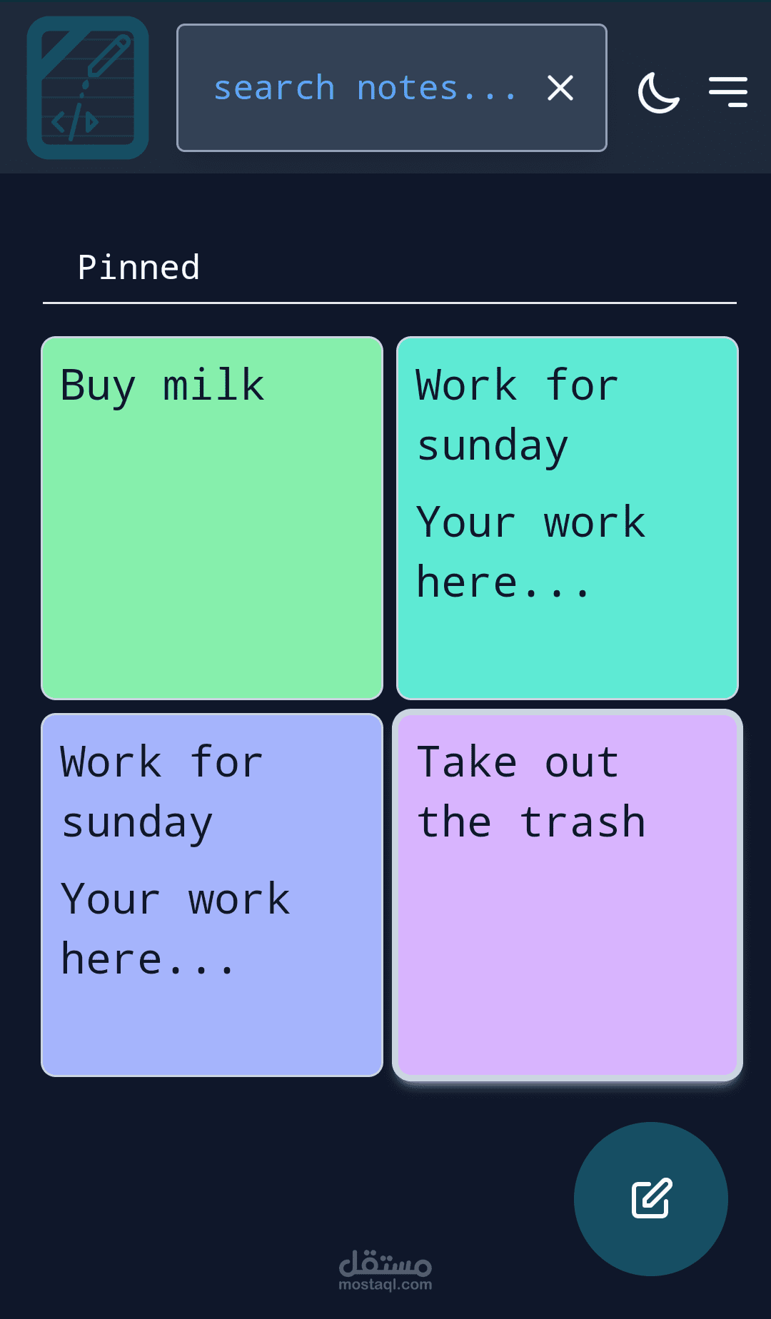 موقع سهل الاستخدام لاضافة افكارك و ملاحضاتك اليومية سريعا.