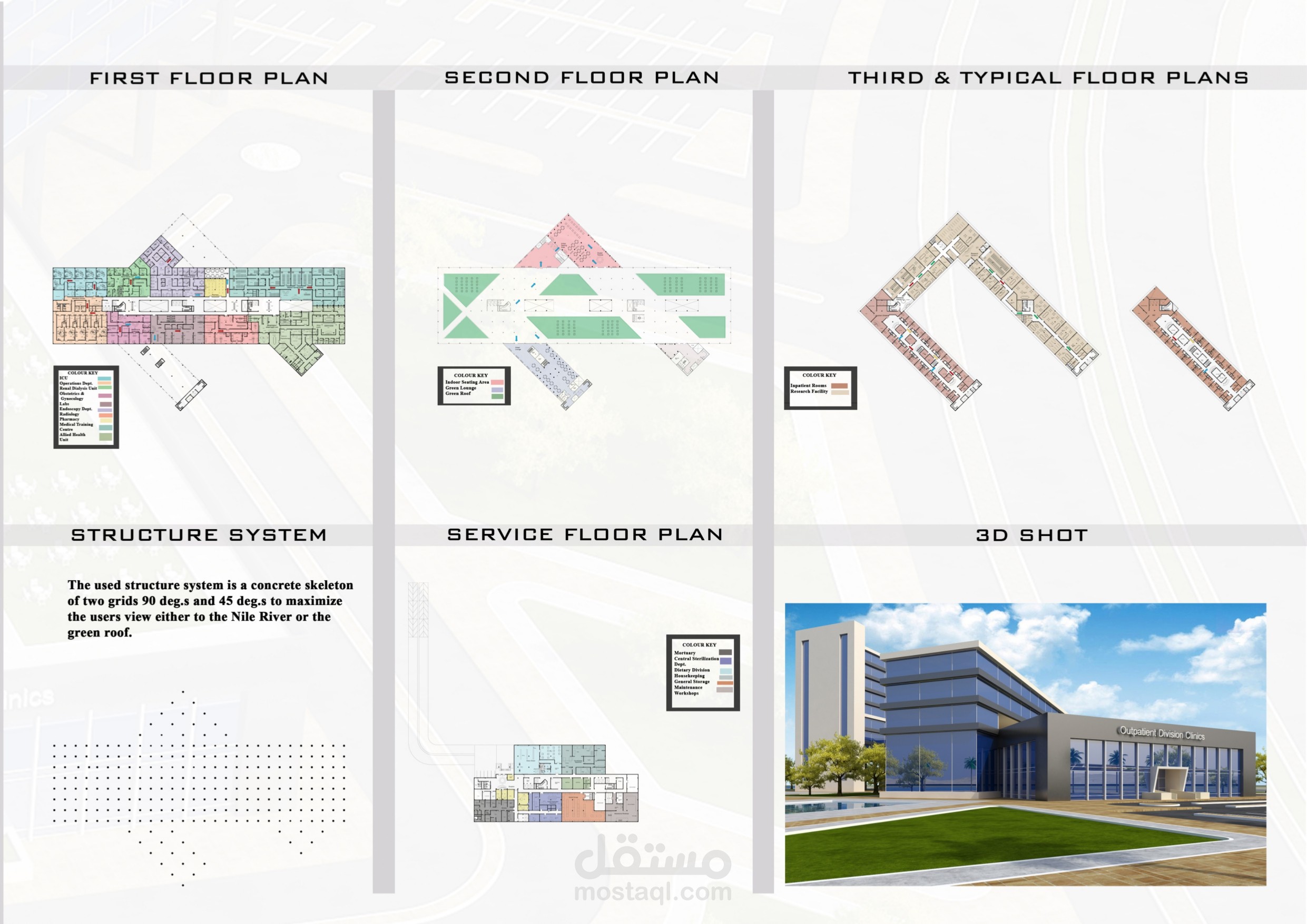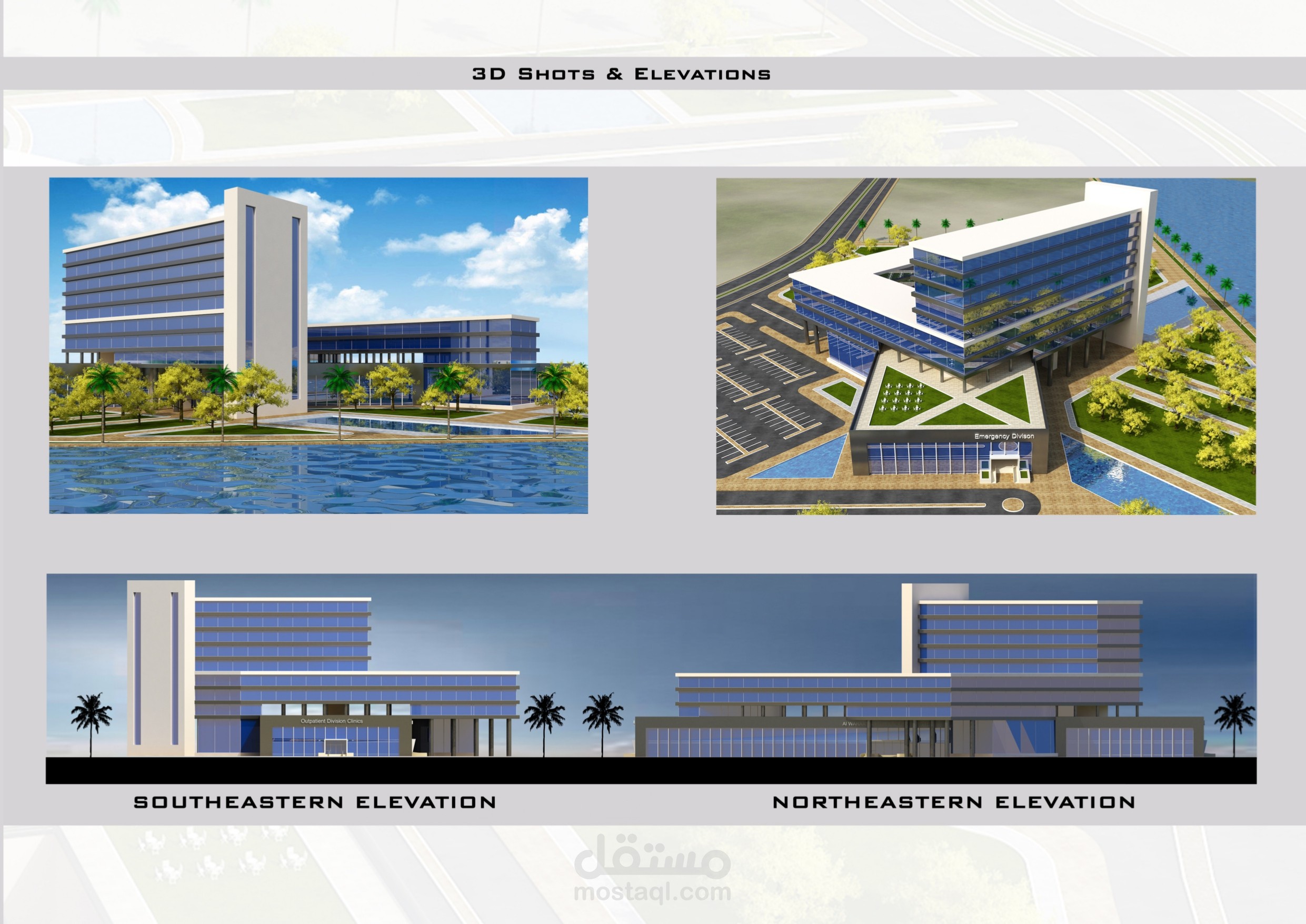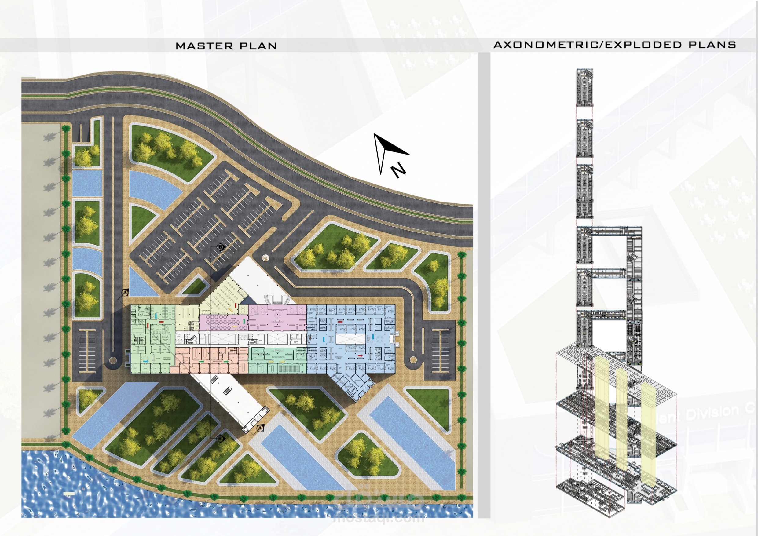 Al Waraa' Island General Hospital is my graduation project in a plan of the island development. I designed this project, and used software skills of 3Ds Max+VRay, Revit and Photoshop.