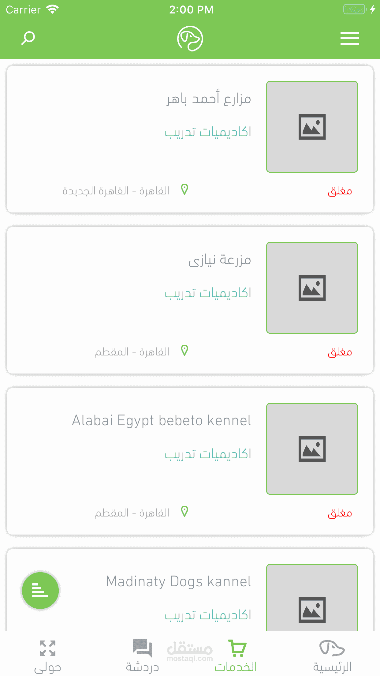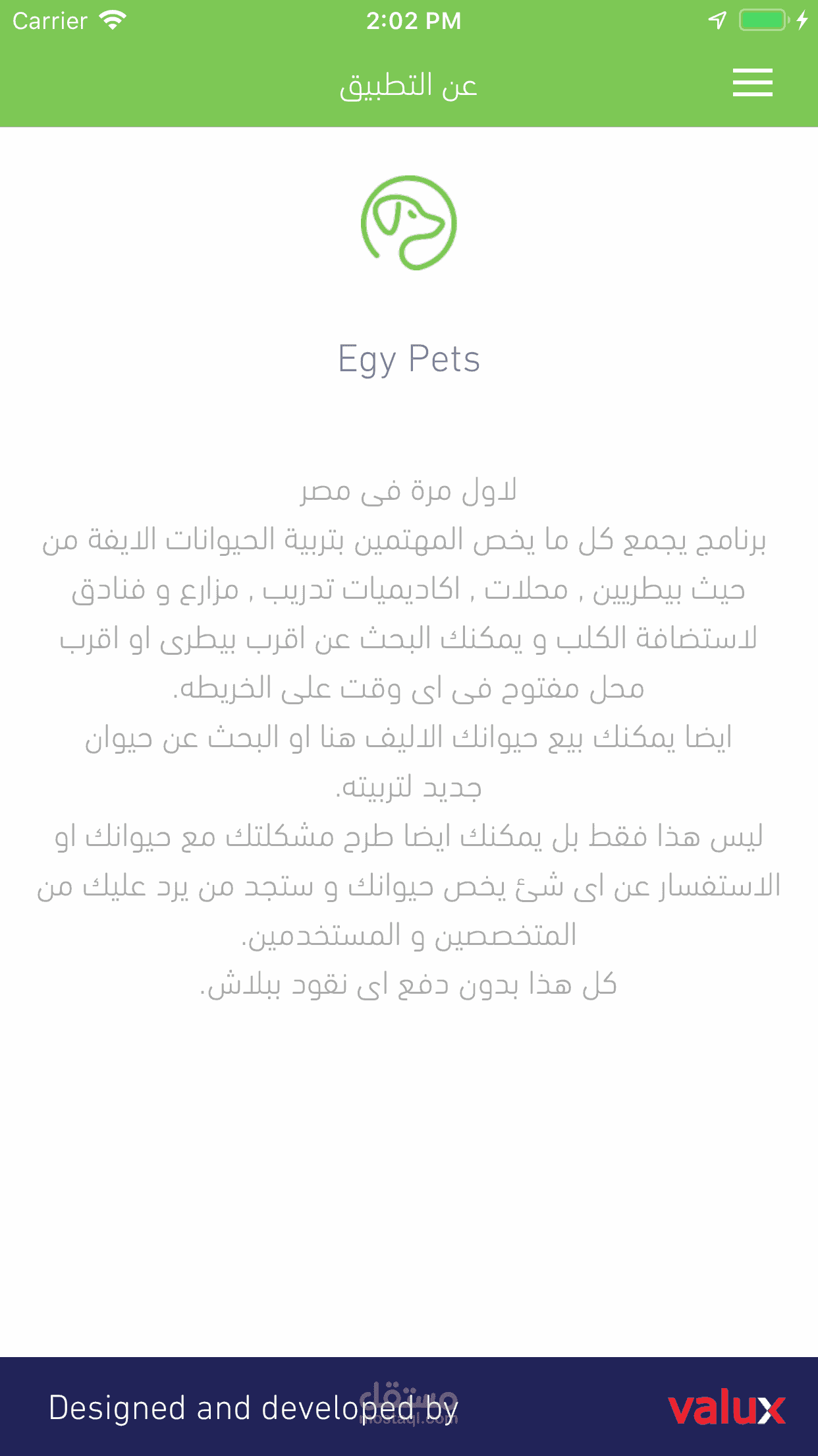 لاول مرة فى مصر برنامج يجمع كل ما يخص المهتمين بتربية الحيوانات الايفة من حيث بيطريين , محلات , اكاديميات تدريب , مزارع و فنادق لاستضافة الكلب و يمكنك البحث عن اقرب بيطرى او اقرب محل مفتوح فى اى وقت على الخريطه. ايضا يمكنك بيع حيوانك الاليف هنا او البحث عن حيوان جديد لتربيته. ليس هذا فقط بل يمكنك ايضا طرح مشكلتك مع حيوانك او الاستفسار عن اى شئ يخص حيوانك و ستجد من يرد عليك من المتخصصين و المستخدمين.
