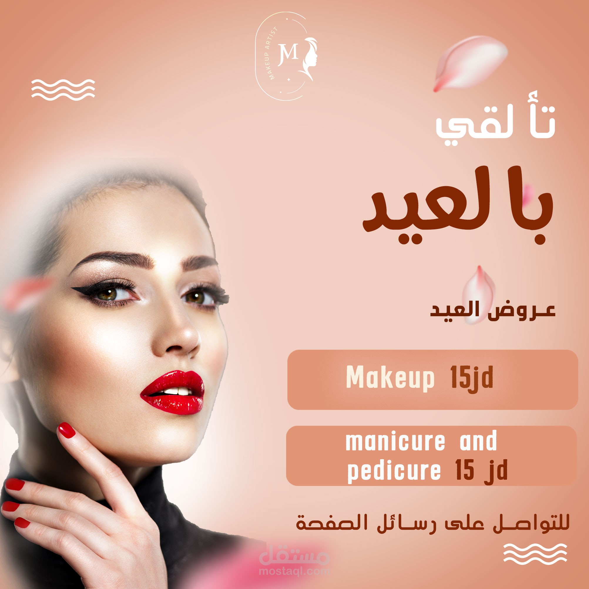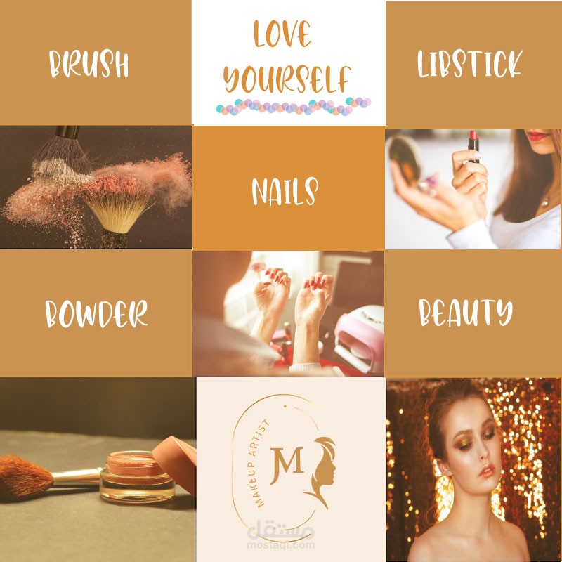 قمت بتصميم هوية بصرية وبوستات سوشال ميديا لصفحة ميكب أرتيست بشكل إبداعي ولطيف