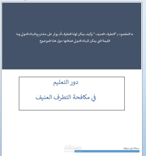 ترجمة ورقة بحثية حول دور التعليم في مكافحة التطرف سواء أكان تطرف ديني أم سياسي وما هو دور البنك الدولي في دعم التعليم