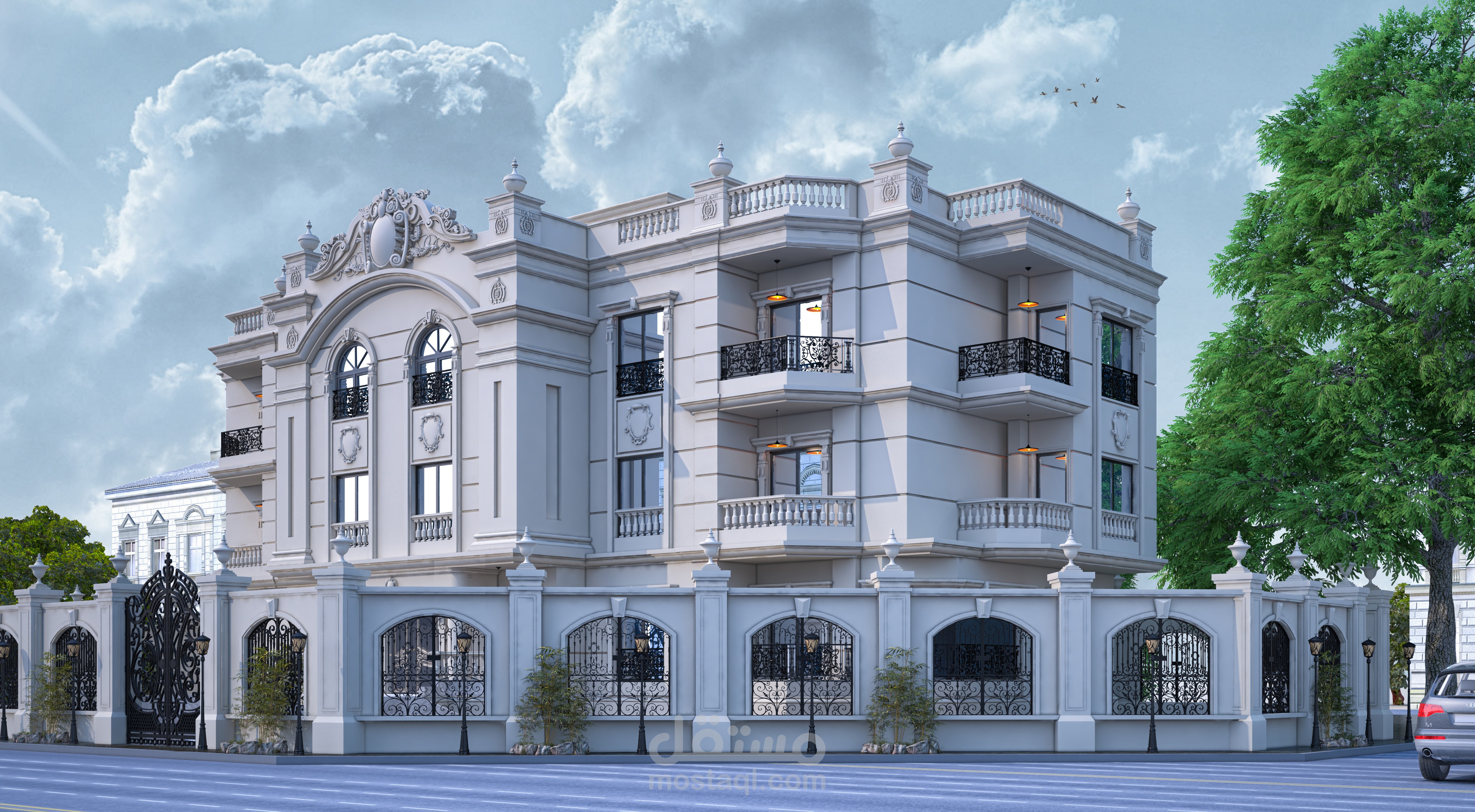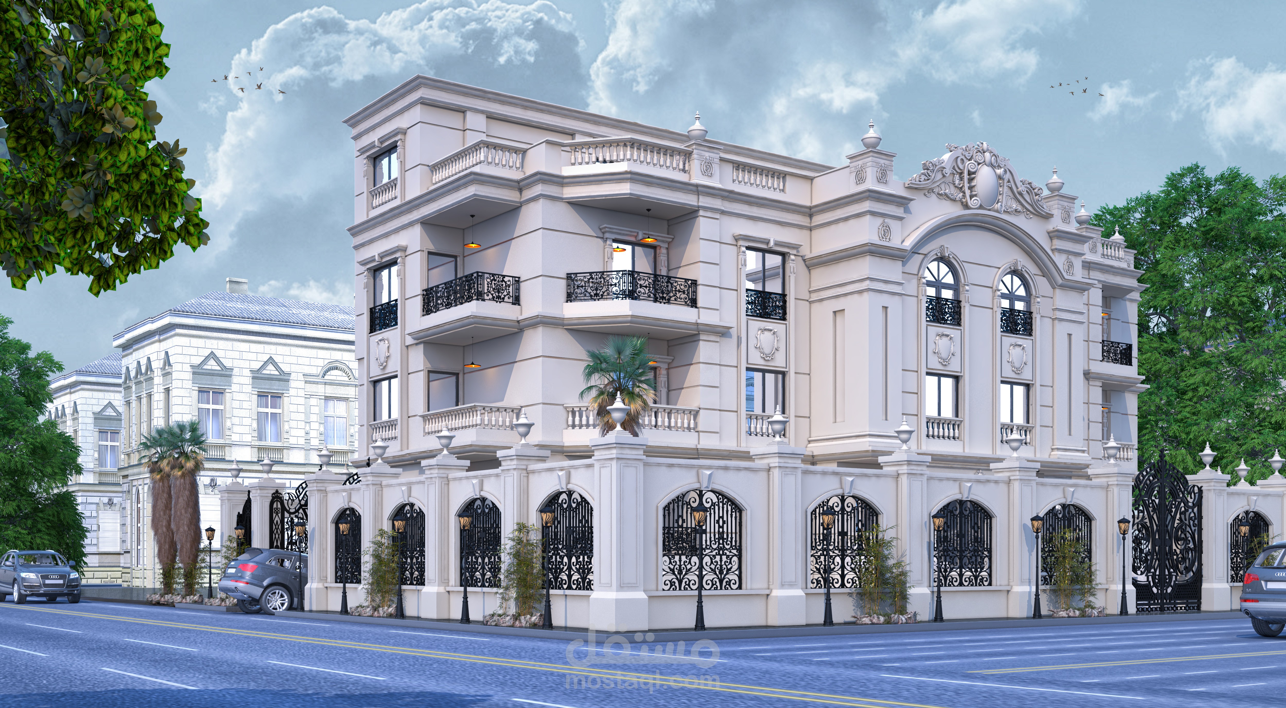 تصميم لواجهه كلاسيك لمبنى سكنى