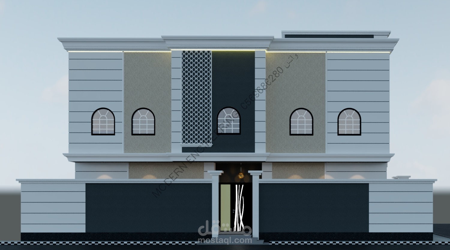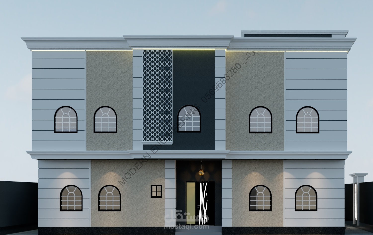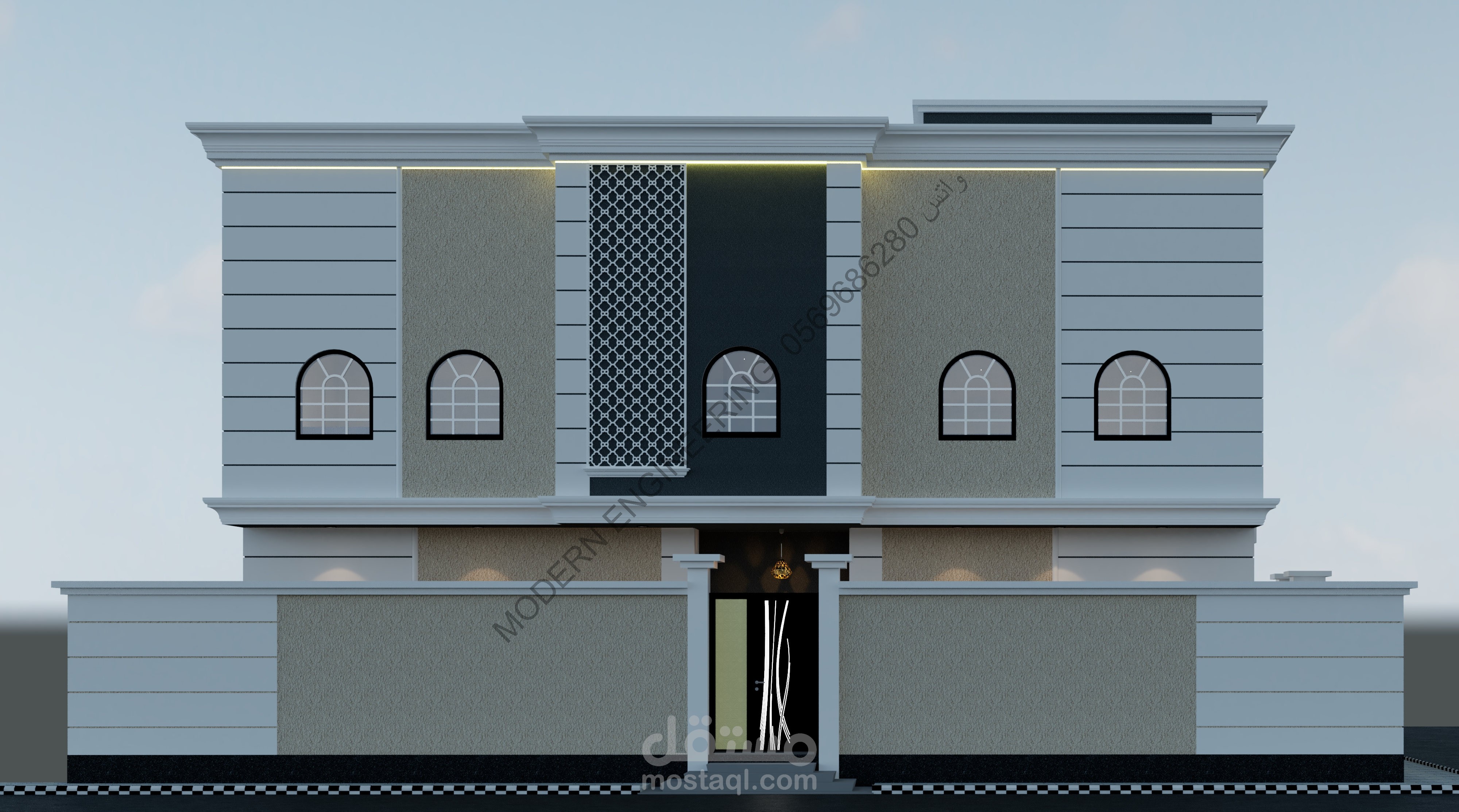 تطوير وتعديل واجهات فلة من مادة البروفايل ومخرجات العمل كانت صور ثري دي ليلية ونهارية مع بيان نوع وارقام الألوان المستخدمة ويتوفر صور المنزل قبل التطوير