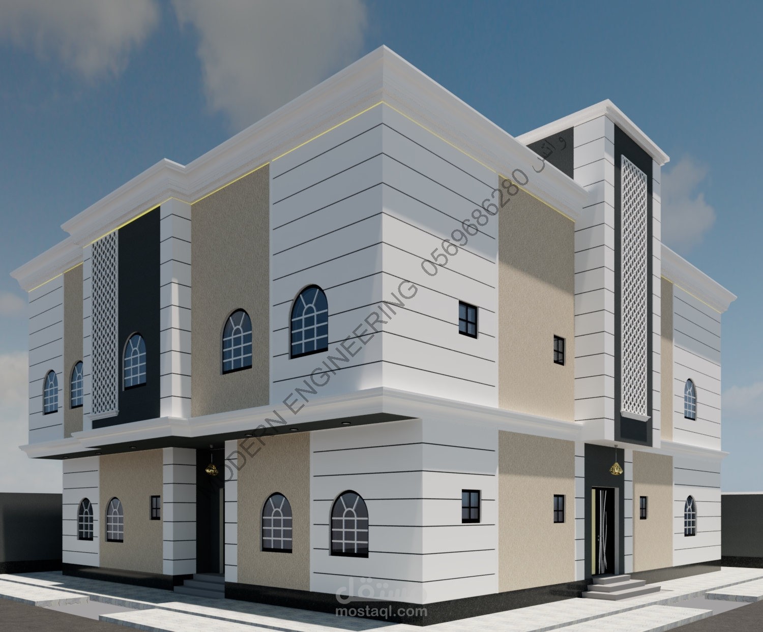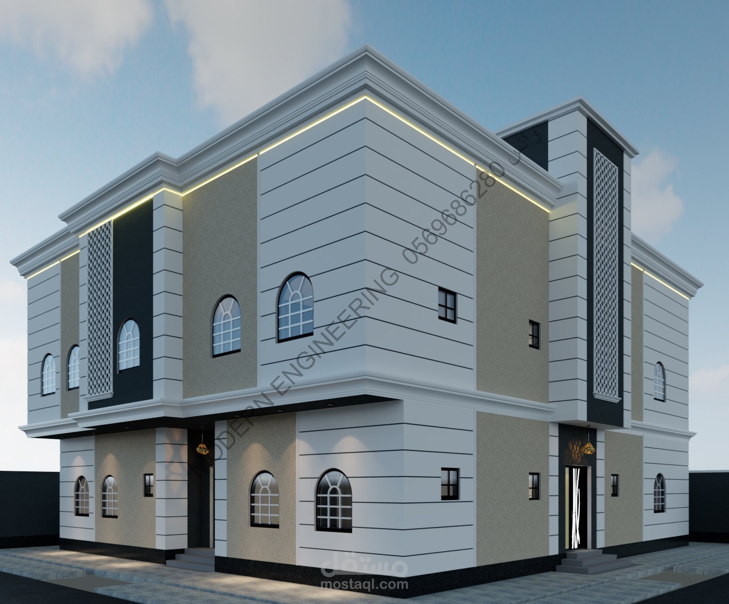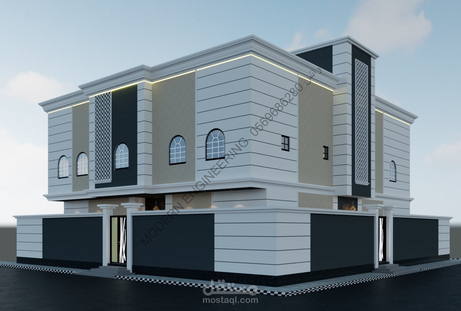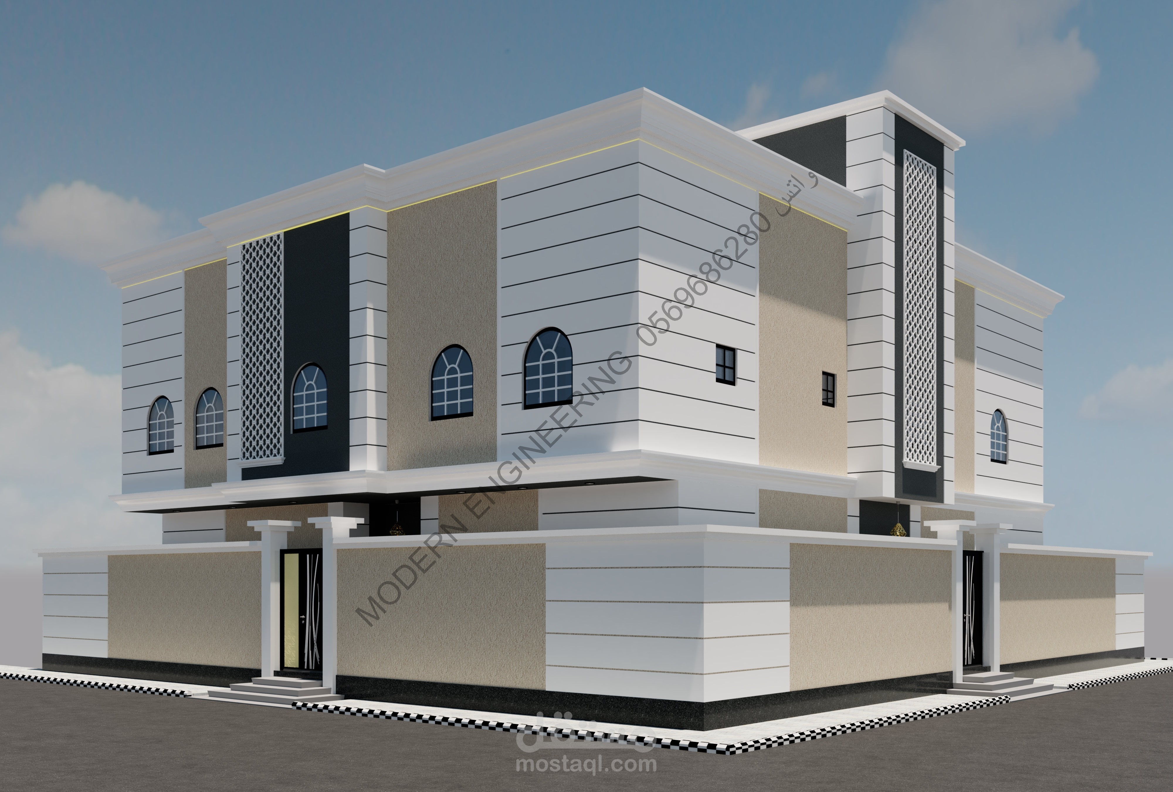 تطوير وتعديل واجهات فلة من مادة البروفايل ومخرجات العمل كانت صور ثري دي ليلية ونهارية مع بيان نوع وارقام الألوان المستخدمة ويتوفر صور المنزل قبل التطوير