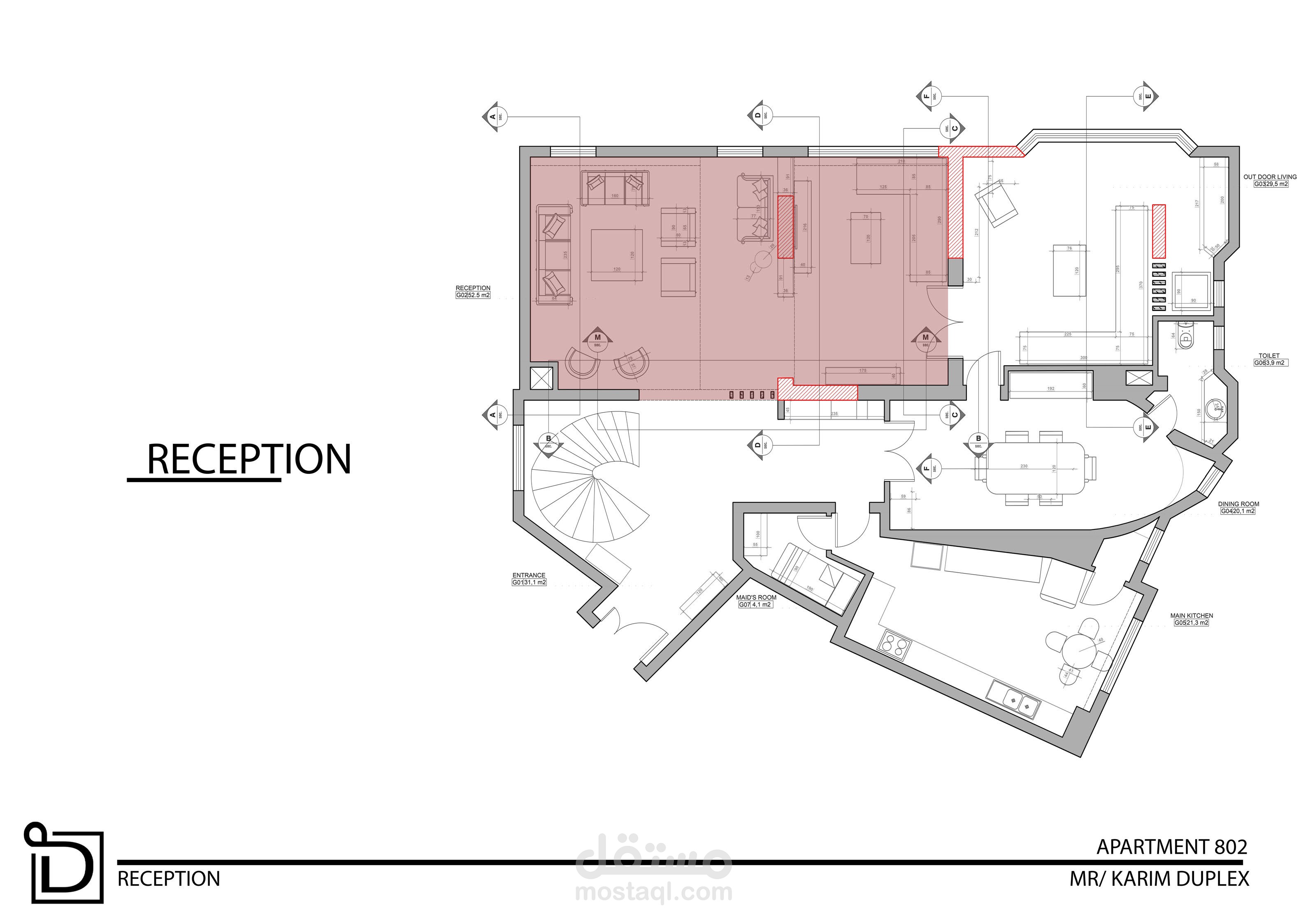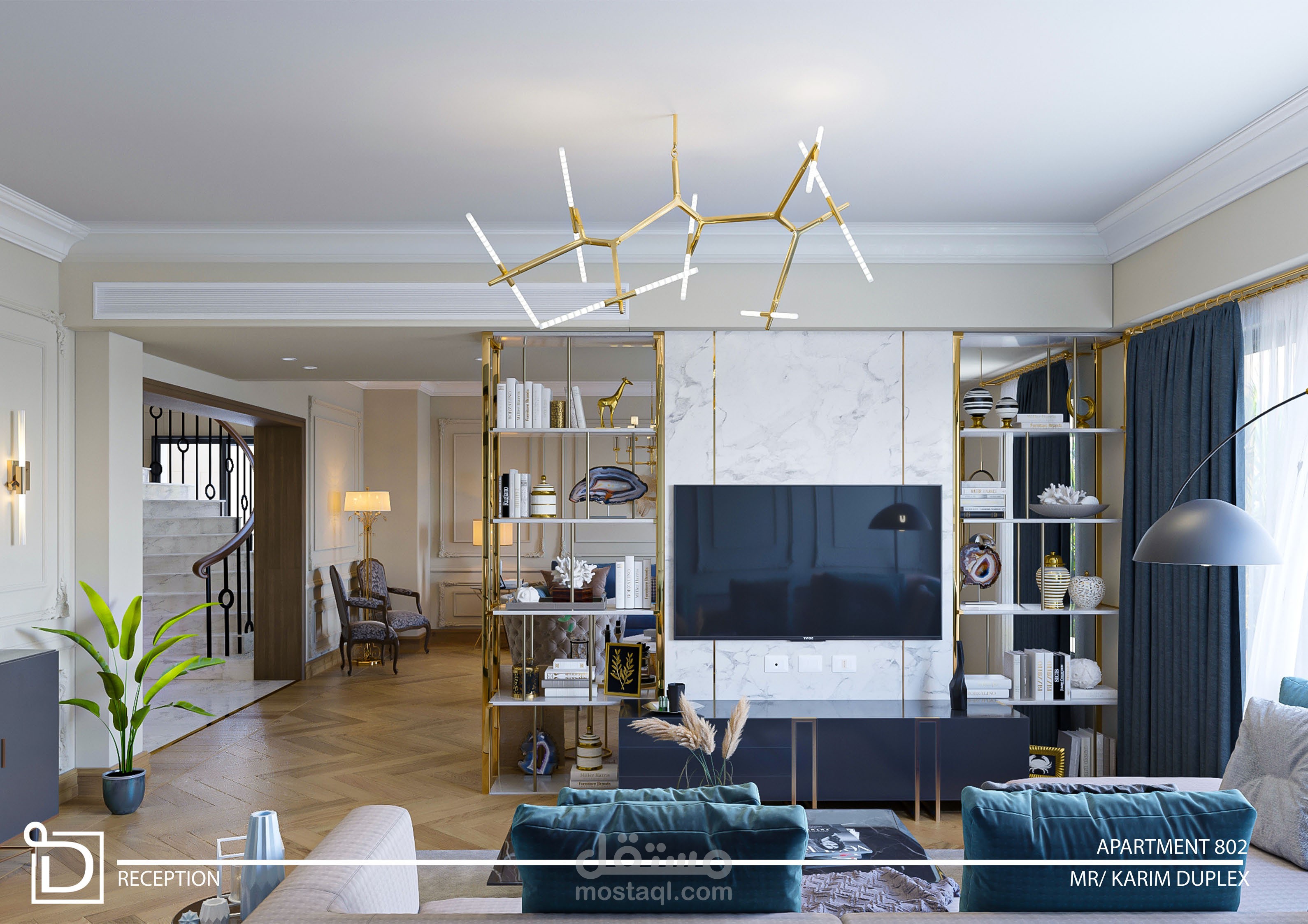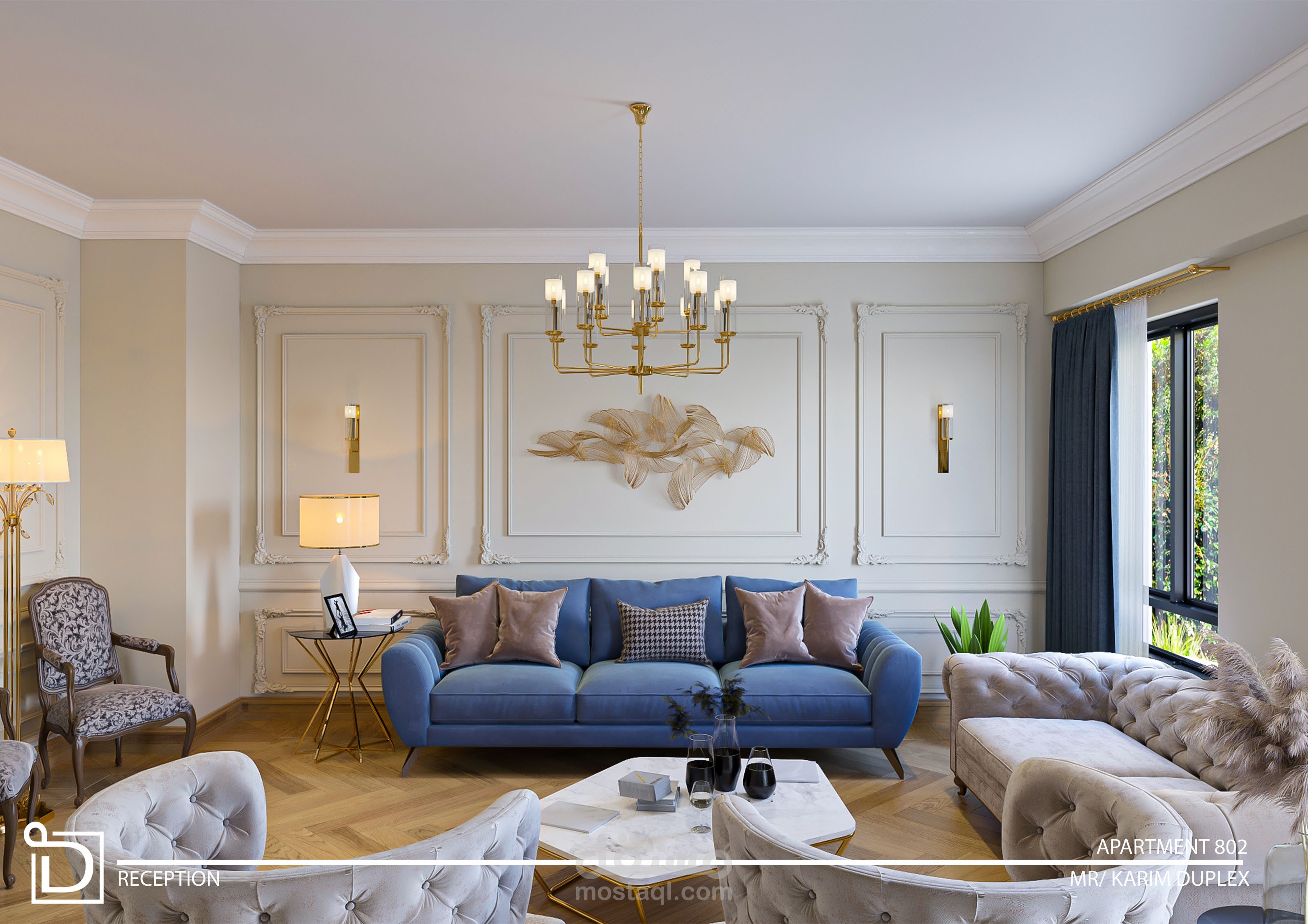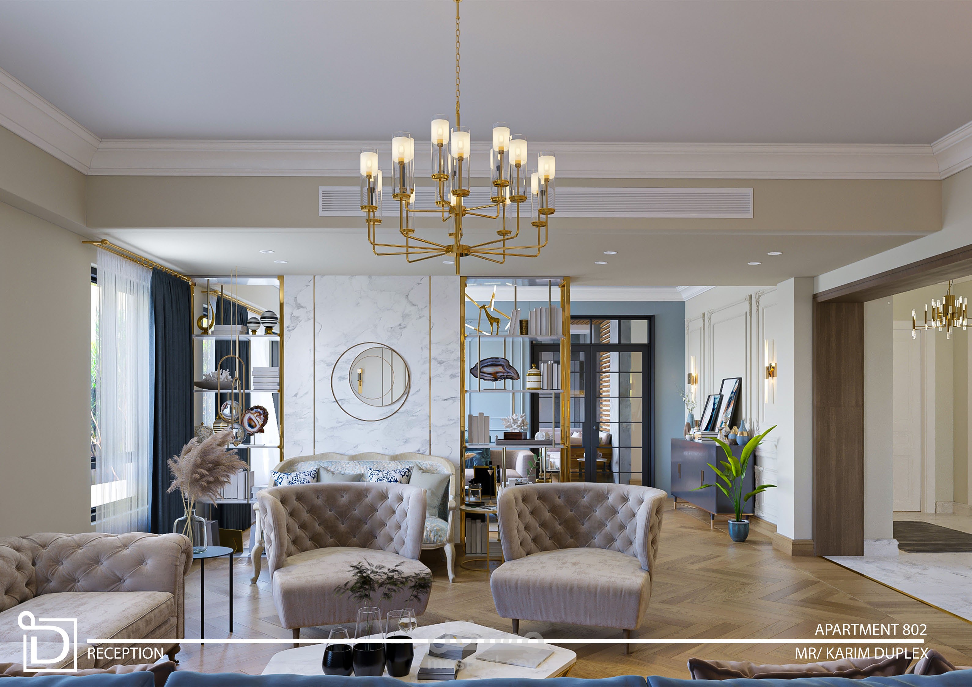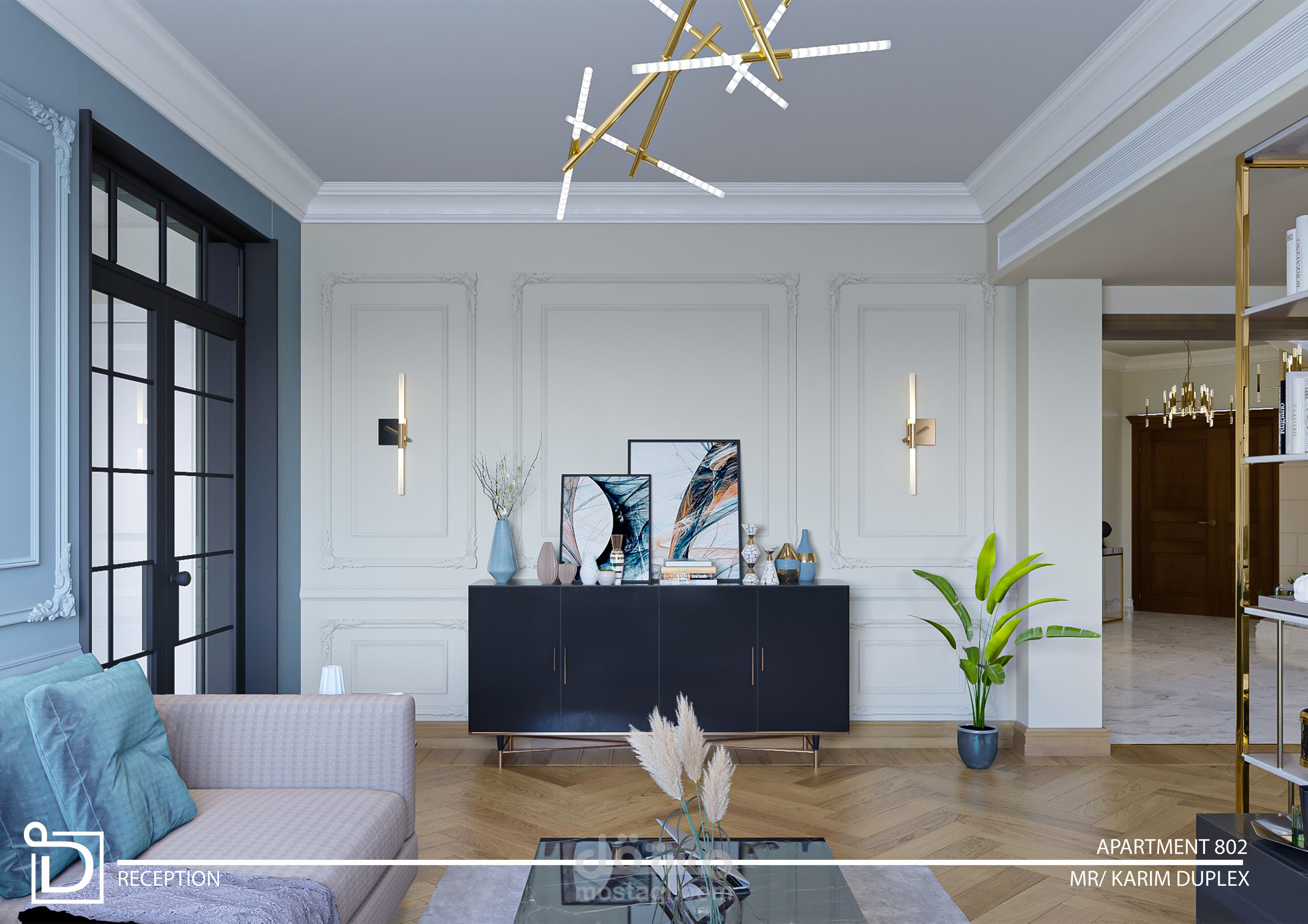 تصميم داخلي ثلاثي الابعاد لمنطقة الاستقبال