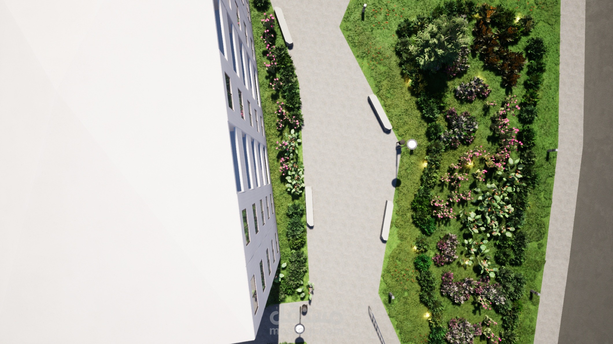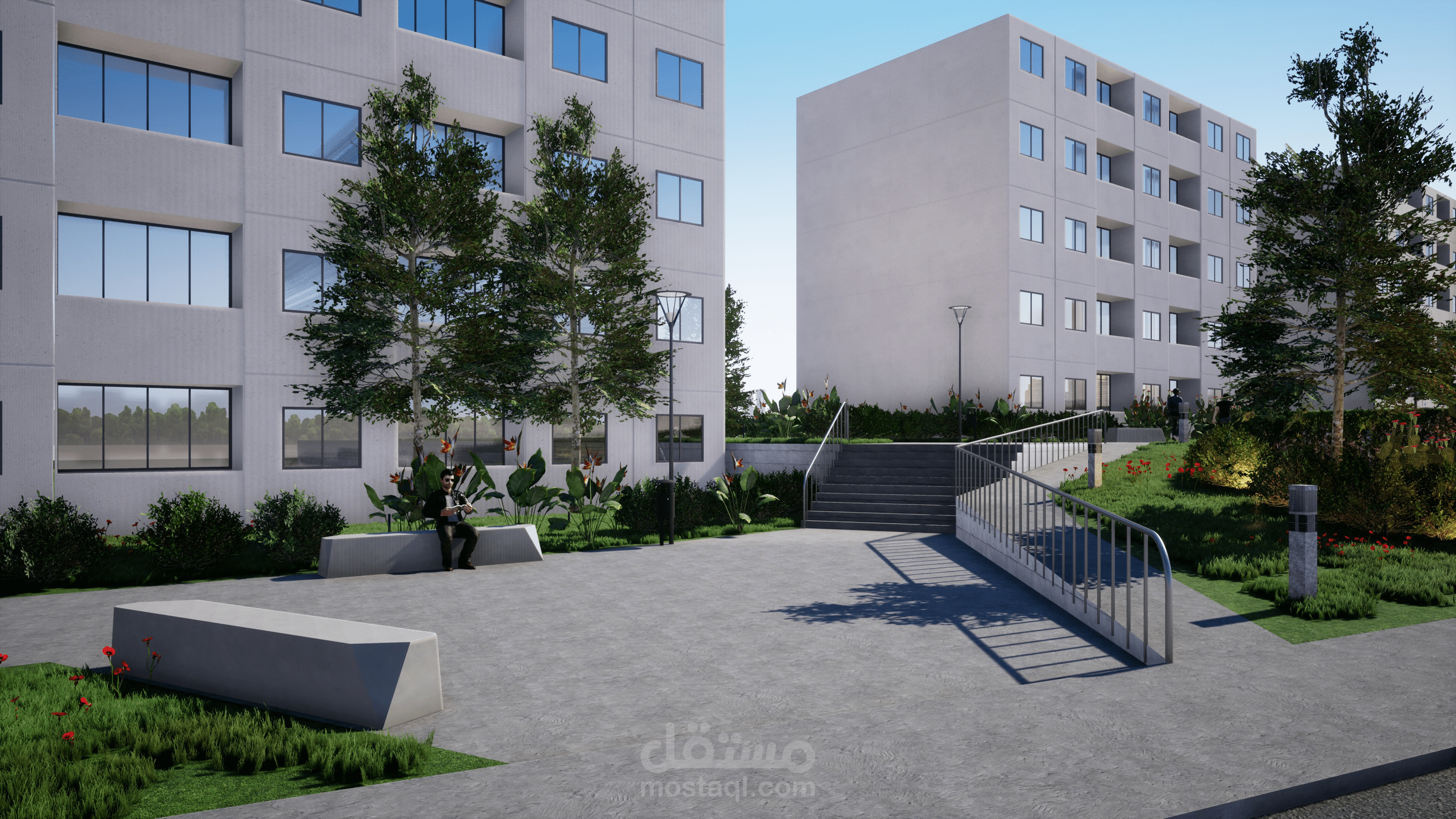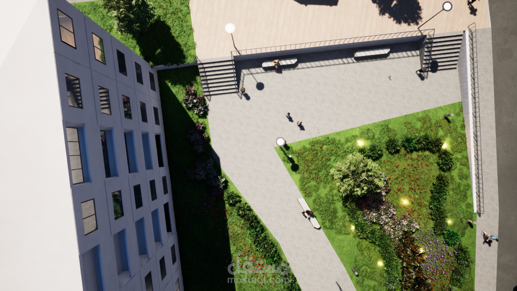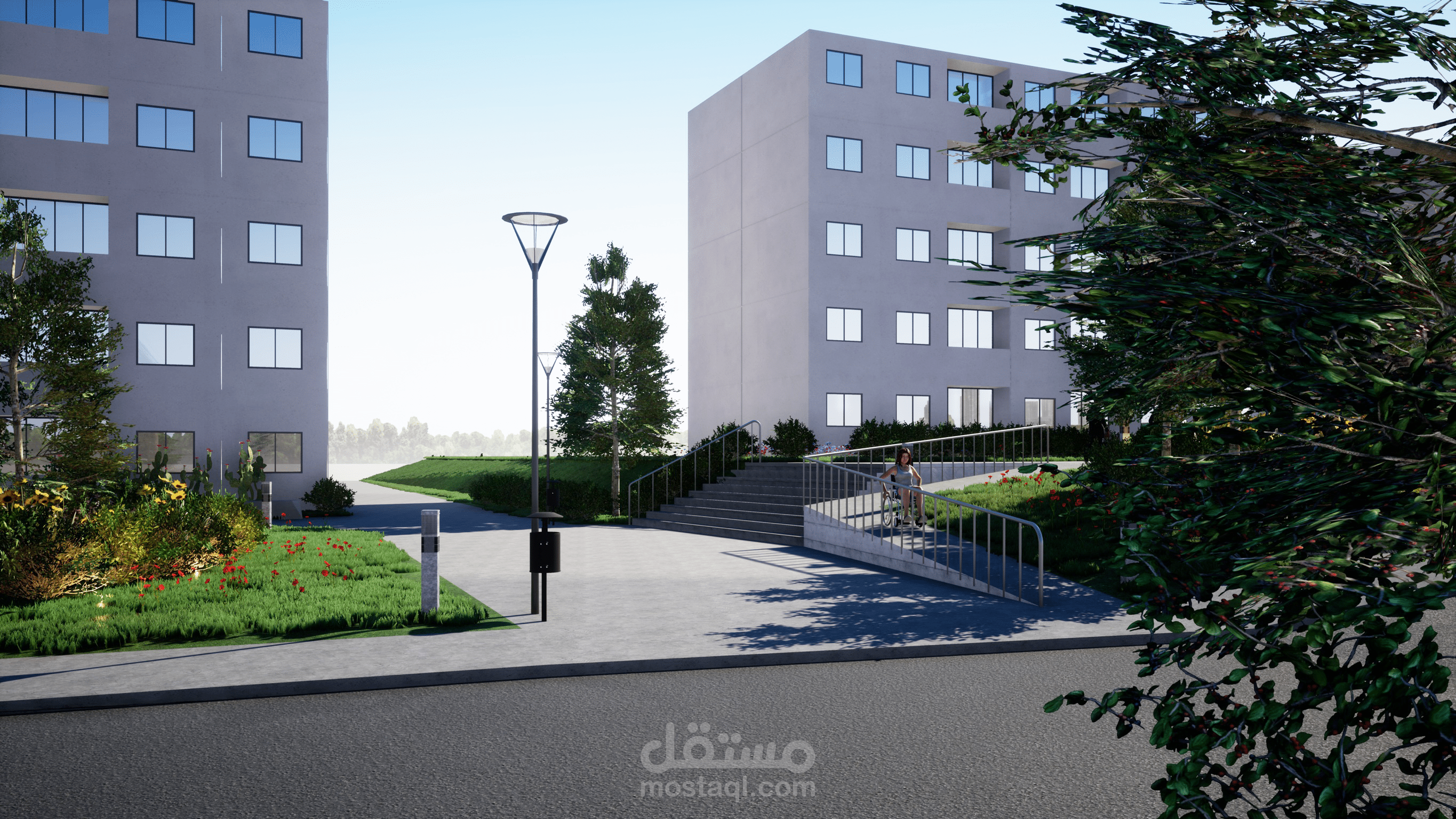 هذا تصميم حديقة عامة في وسط مدينة الجزائر على أرض منحدرة.