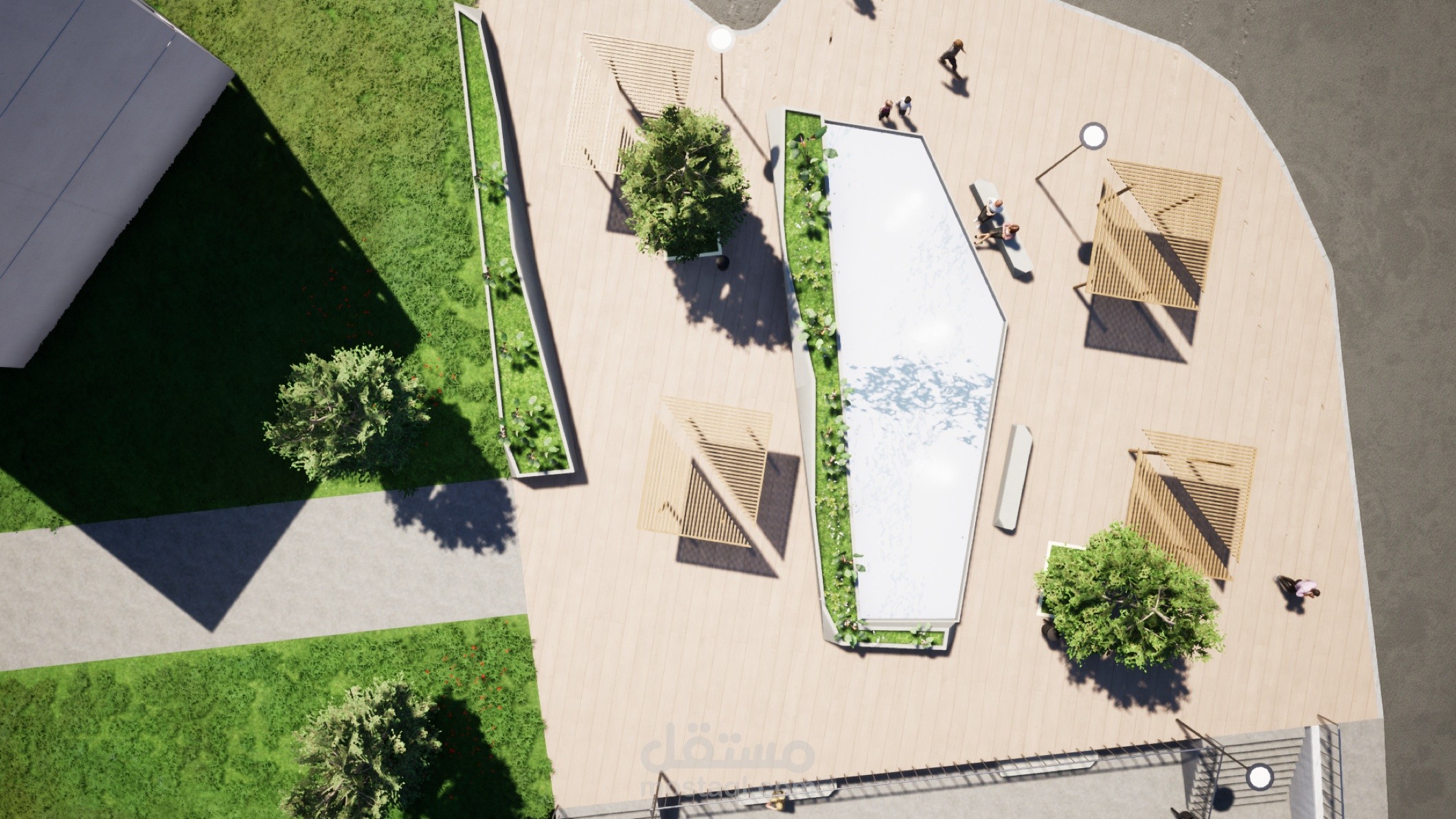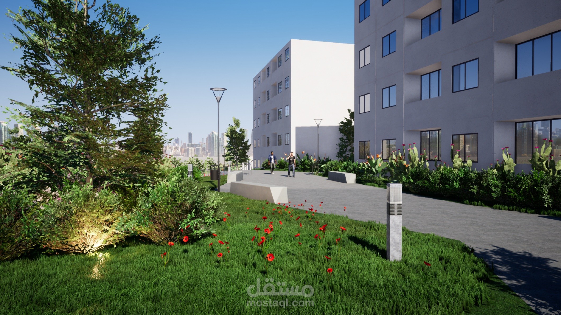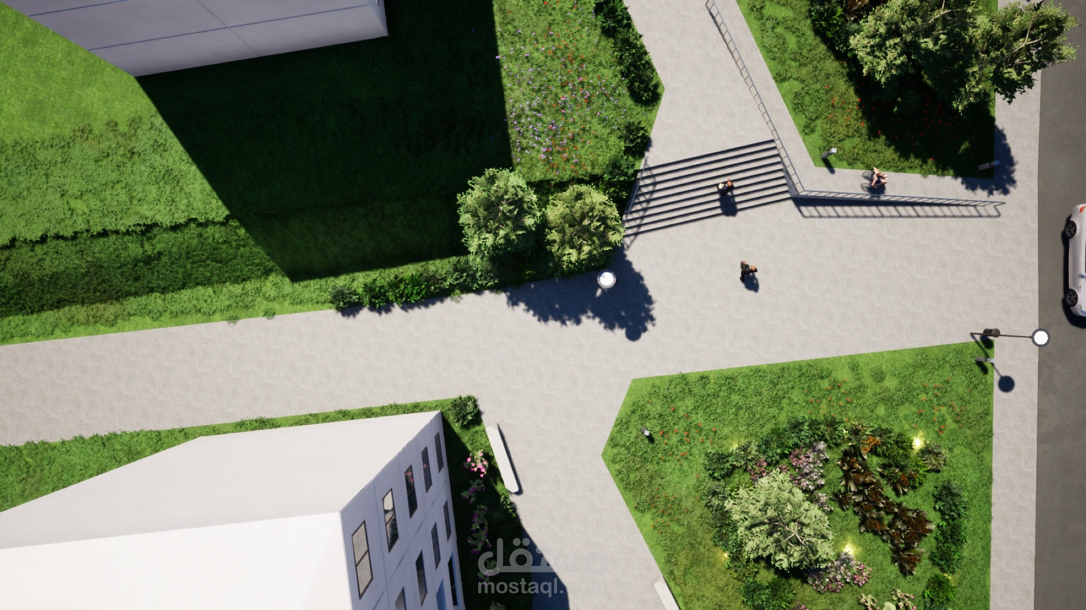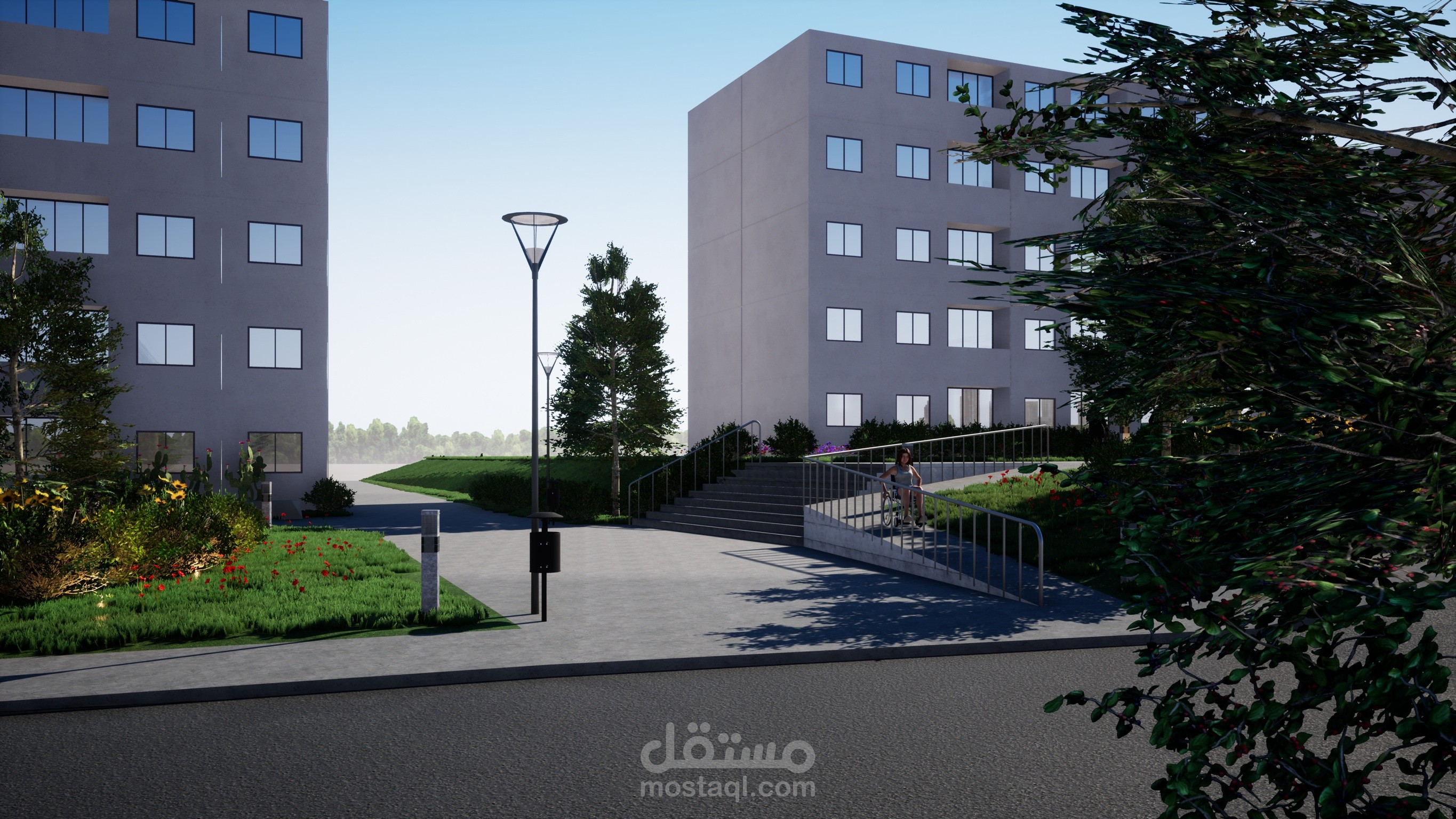 هذا تصميم حديقة عامة في وسط مدينة الجزائر على أرض منحدرة.