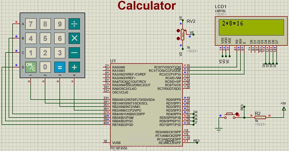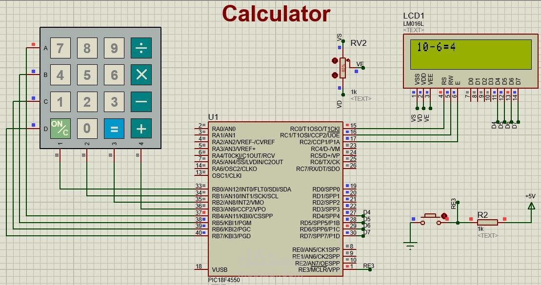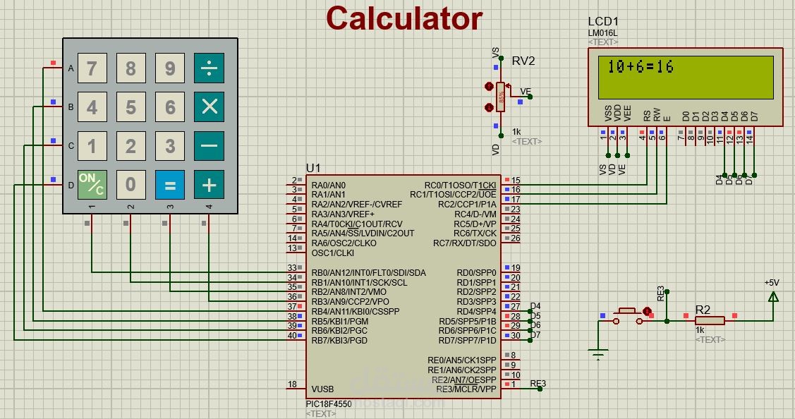 Simple Calculator using PICF184550 Microcontroller that can perform the basic arithmetical operations like Addition, Subtraction, Multiplication, and Division. With interfacing an LCD to print out the whole operations.