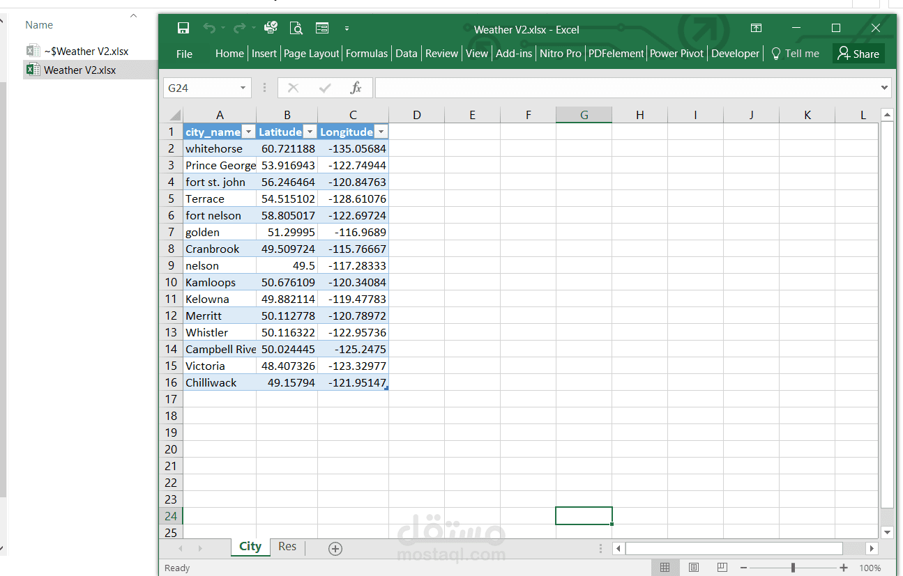 وذلك عن طريق ملف اكسيل فيه المدن التي اريد ان اعرف درجات الحرارة لها