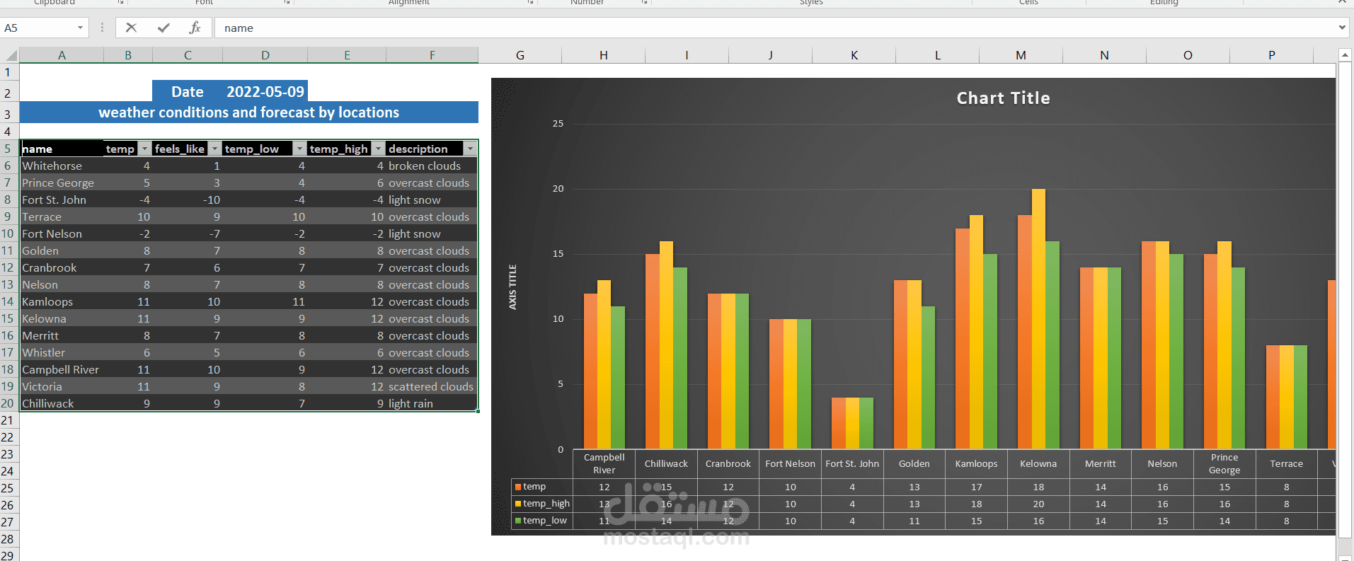 وذلك عن طريق ملف اكسيل فيه المدن التي اريد ان اعرف درجات الحرارة لها