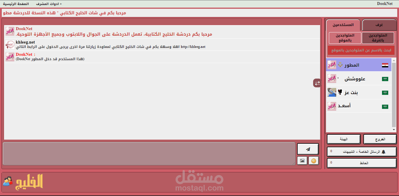 يستطيع المشرف ( طرد , حظر , طرد من الغرفة , تنبيه , اعلان للشات , اعادة تشغيل الشات , .... غيرها )