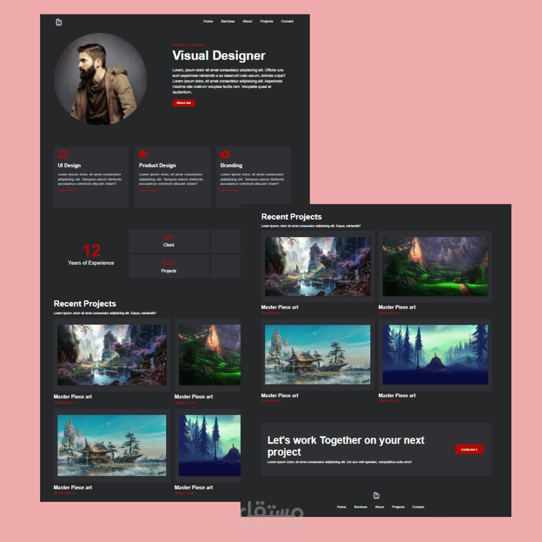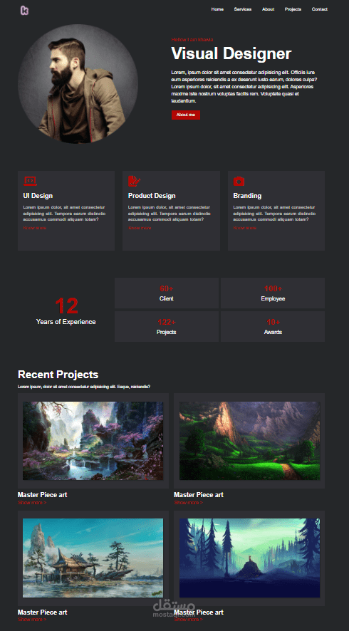 HTML & CSS Portfolio Website Contain 5 Sections with a simple & beautiful design dark theme.