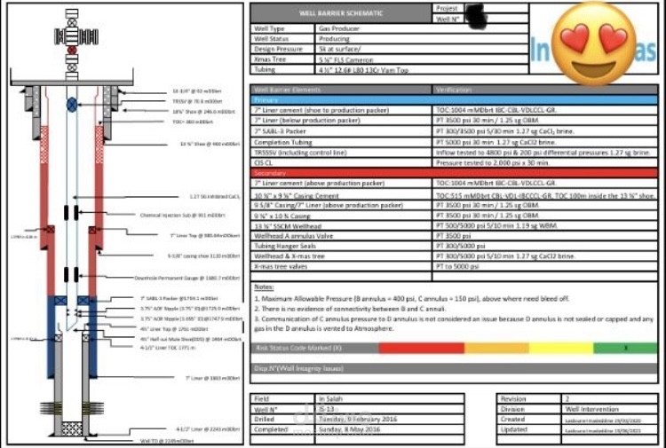 Making Well Barrier Schematic, which identify primary and secondary barriers in a table and drowning well schematic showing those barriers.