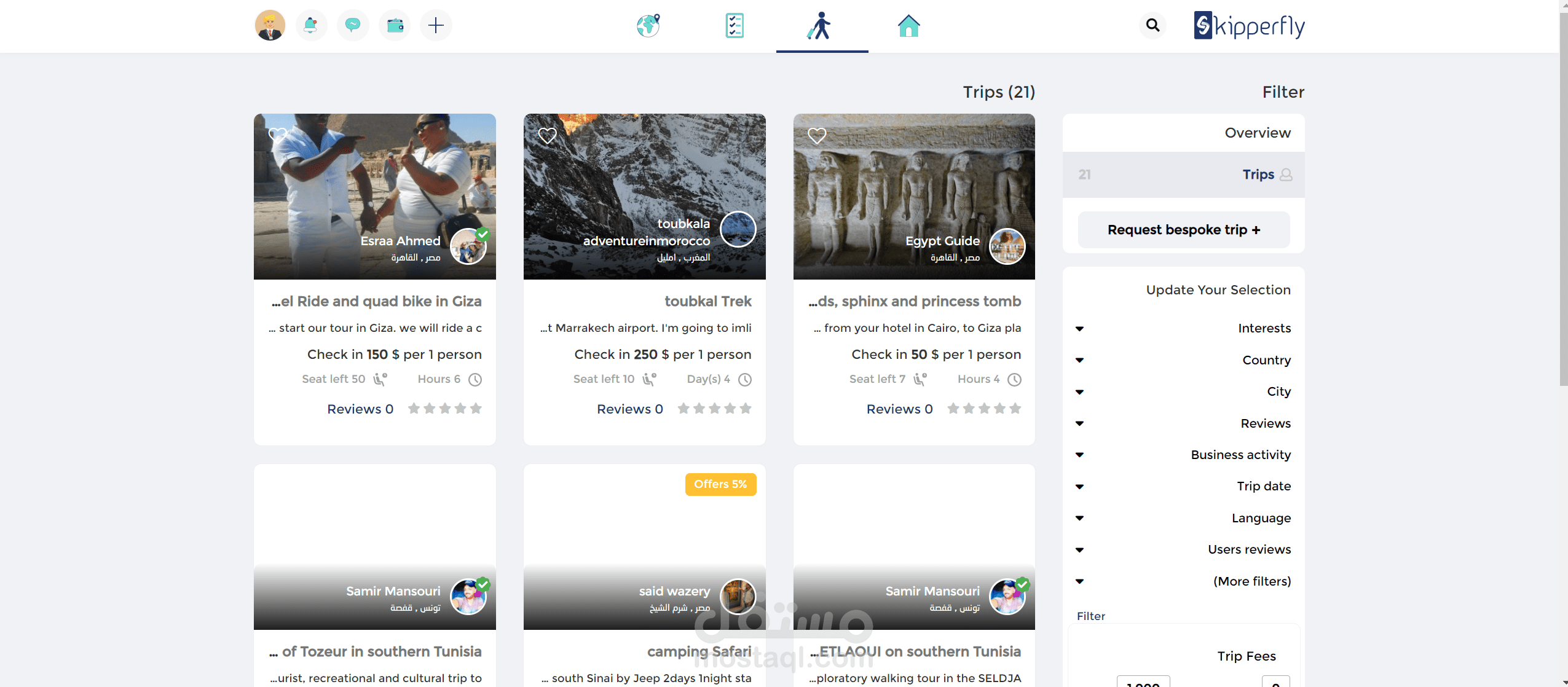 مشروع وتطبيق حيث انه مجال المشروع عبارة عن سوشيال ميديا مع نظام تواصل مع وكلاء معتمدين في كافة مدن العالم لتنسيق وحجز الرحلات مسبقا ومعرفة مسار الرحلات وحجز رحلات معروفة المسارات مع نظام كليندر لحجز رحلة لامد بعيد ونظام لتواصل مع الاشخاص