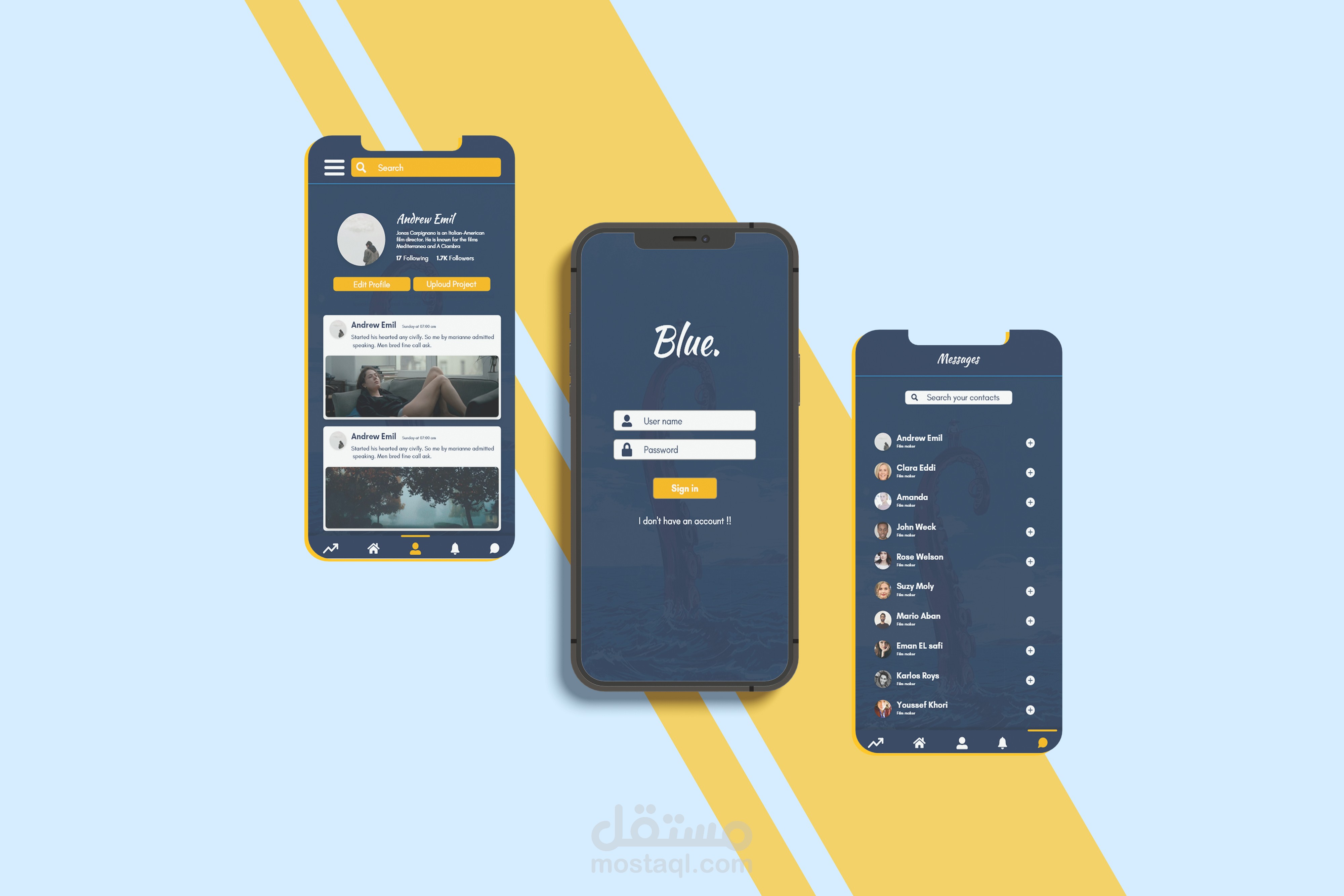 UI & UX for Blue. social media platform whose main focus is to showcase and discover creative work.