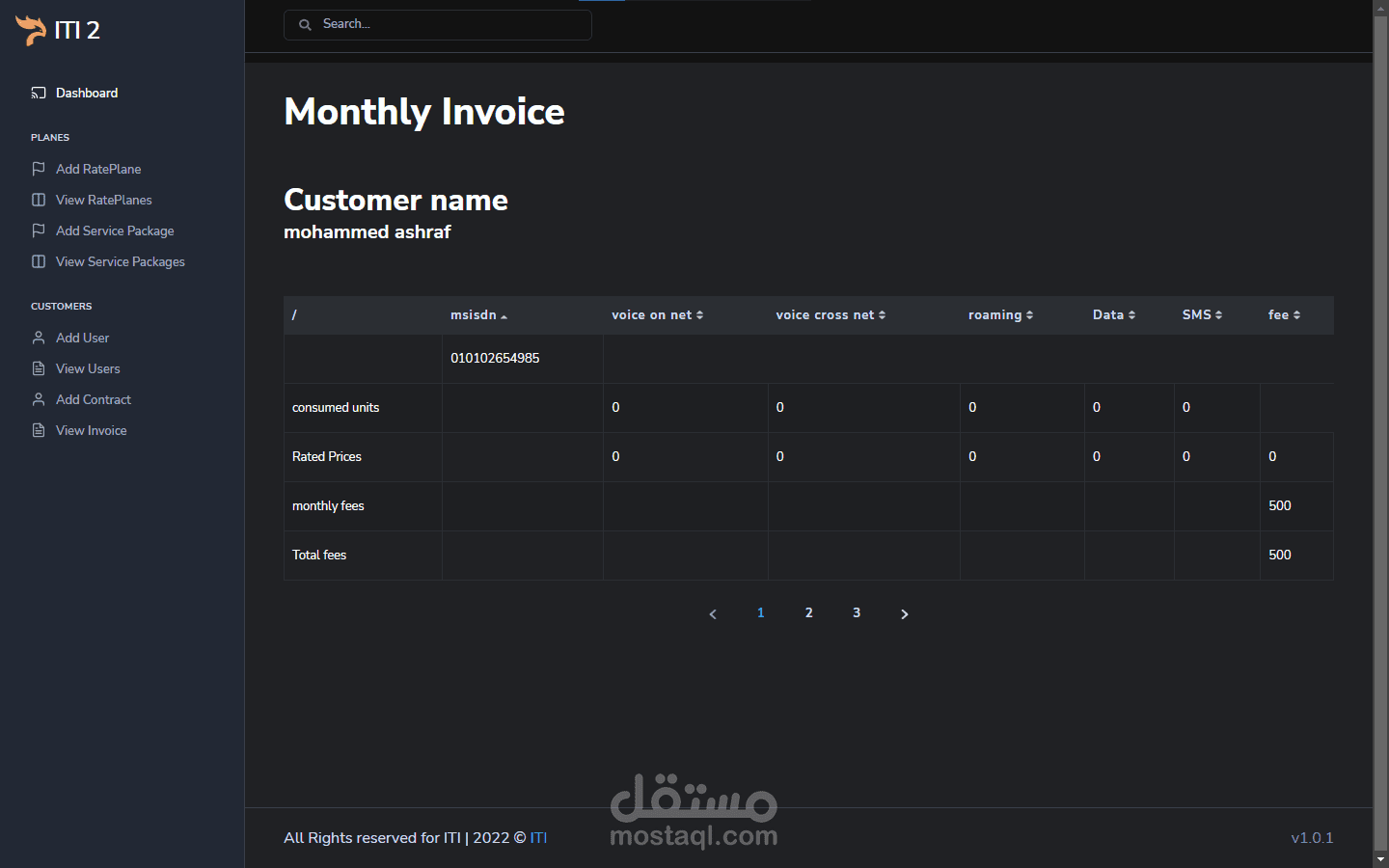 The project simulates the real billing system used by the telecom operators in order to rate the postpaid users consumption and provide a detailed invoice for each user with all his owned numbers and the usage for each one.
