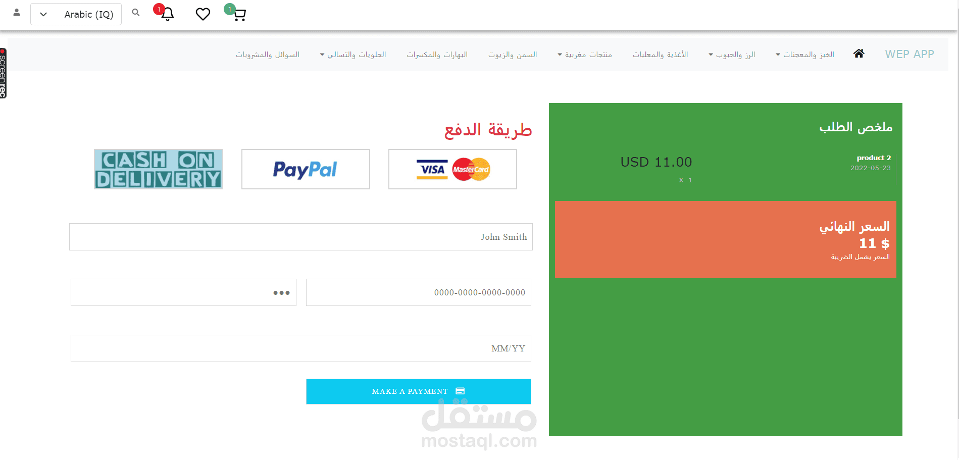 موقع للتسوق الإكتروني مع بوابة الدفع بايبال وفيزا