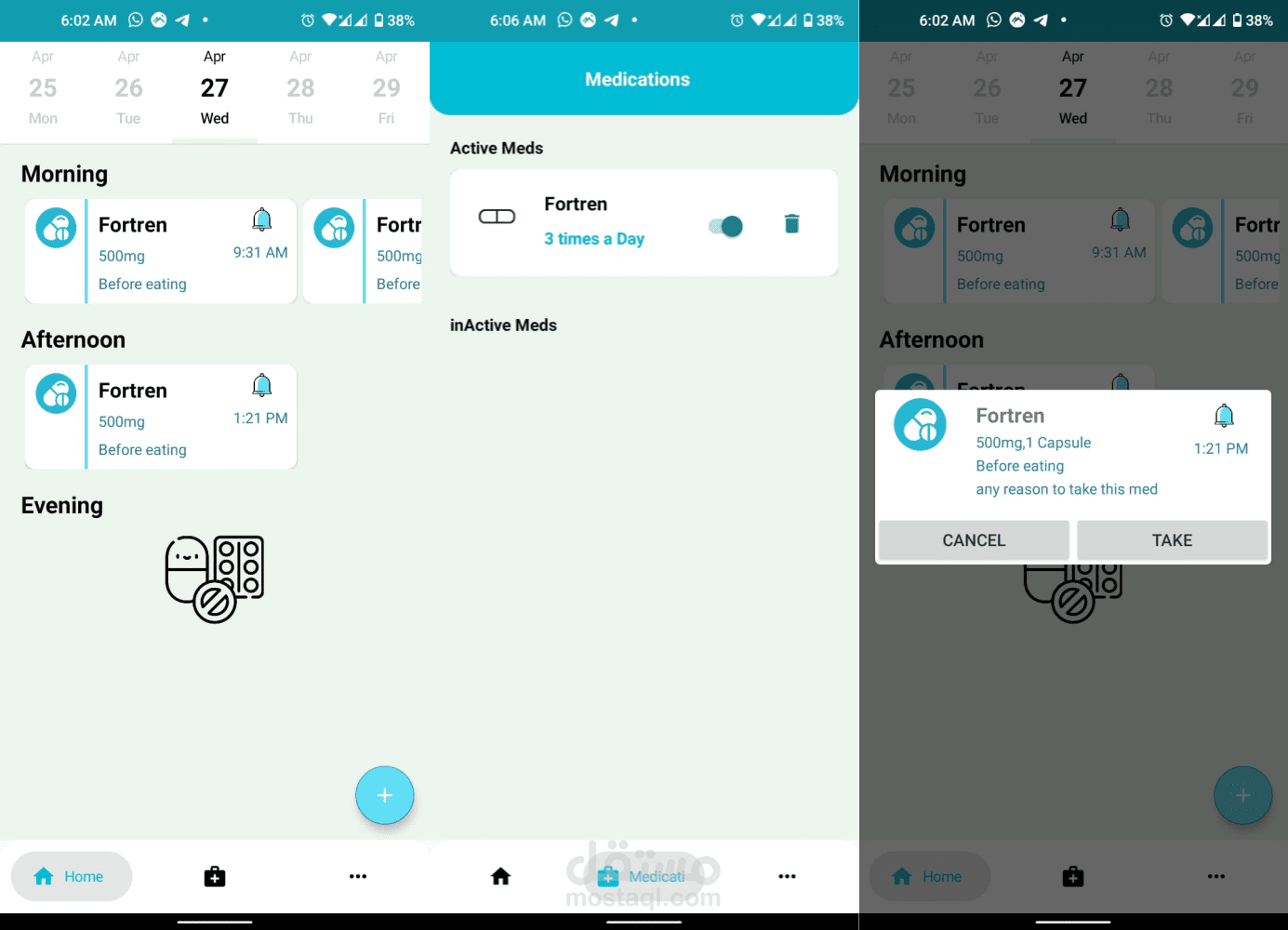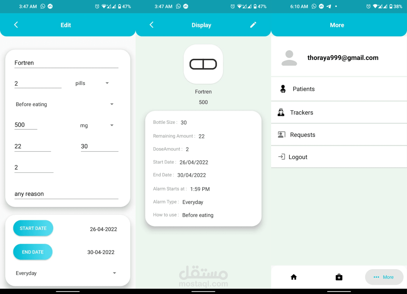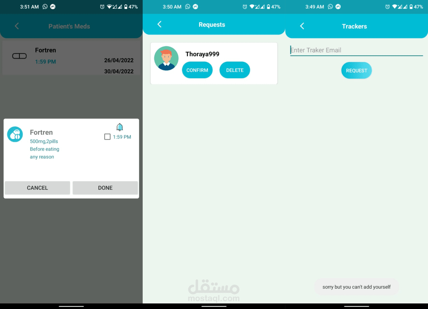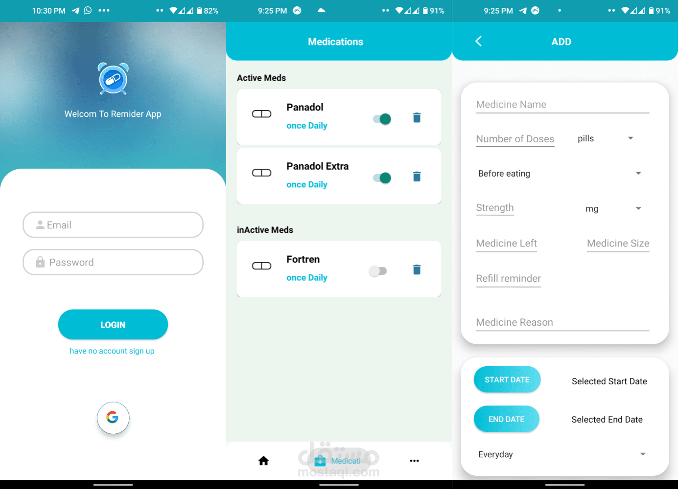 Sometimes we forget to take medicine in time. It happens more when we travels a lot or any other reasons. Sometimes we forget to purchase new medicine when it near to finish. We provide this Android App that helps the user to list their medicines with detailed information. User sets the date and time with the medicine name and gets notified by the reminder alarm, also notified to refill their medicine when it reaches the refill number. User can also add many trackers to follow their medication.
