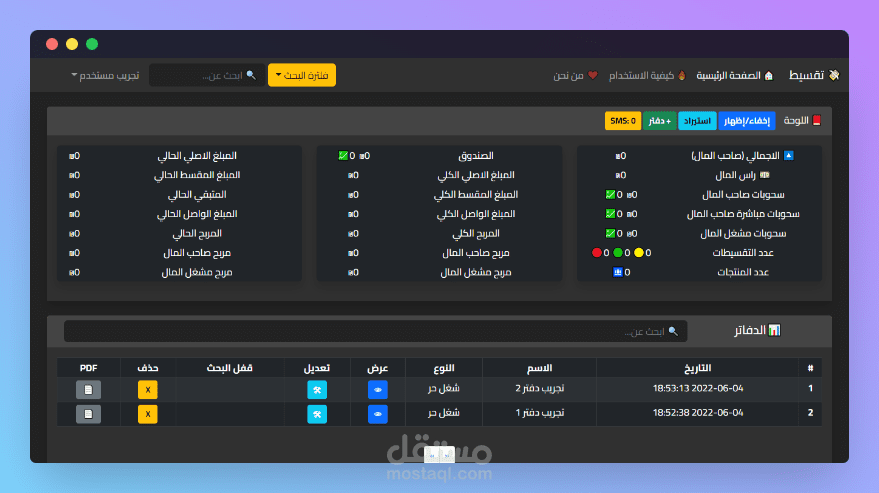 يعرض هذا الموقع ثمرة جهد استمرت ل 4 أشهر متواصله من العمل الدؤوب لانجازه. فهو عبارة عن نظام محاسبي دقيق مختص بالتقسيطات ، حيث يتم اضافة دفاتر وتسجيل الزبائن في كل دفتر منفصل وعرض حسابات واحصائيات كل دفتر كلى حدا.