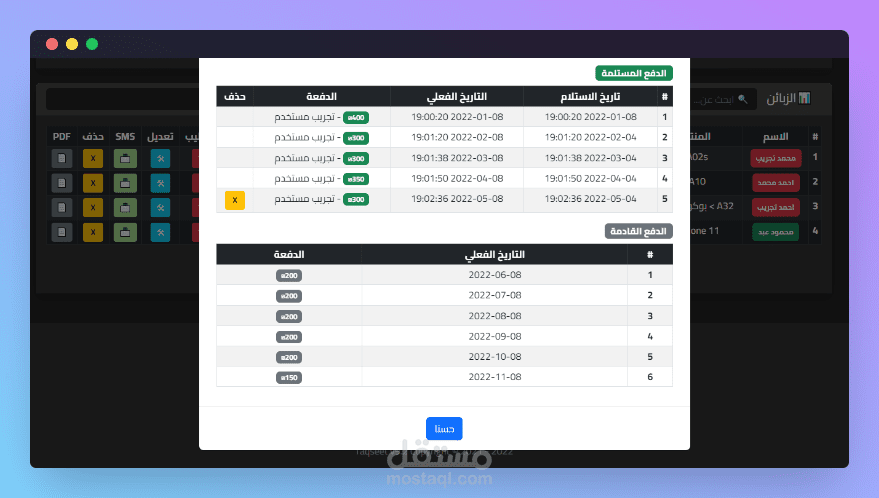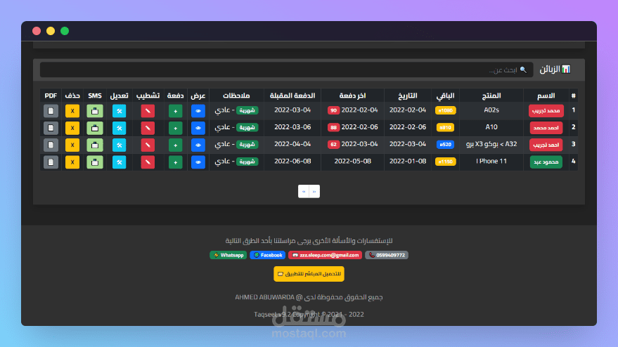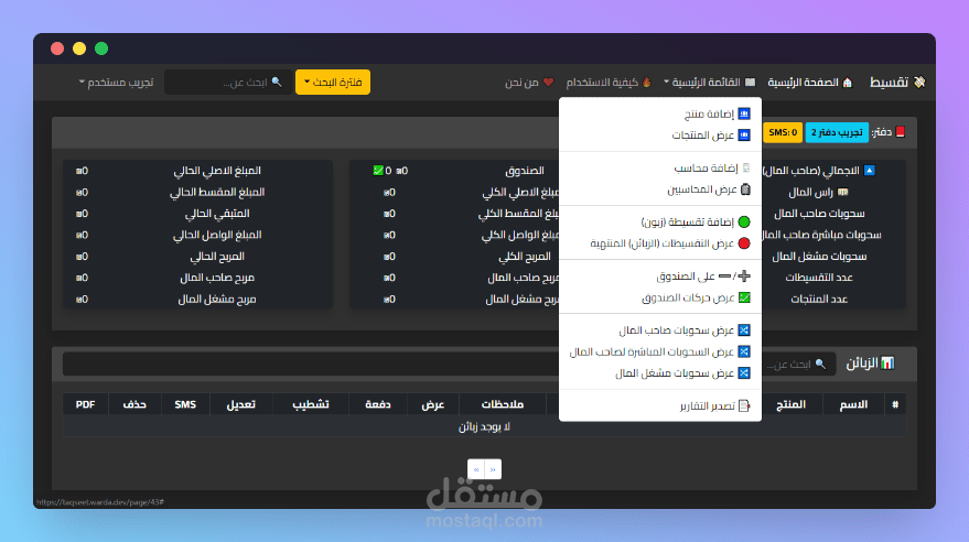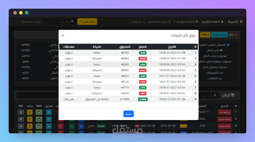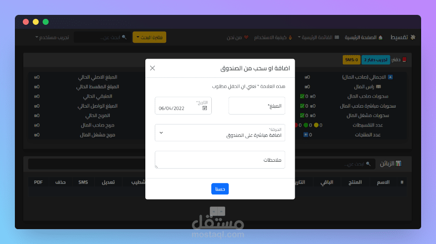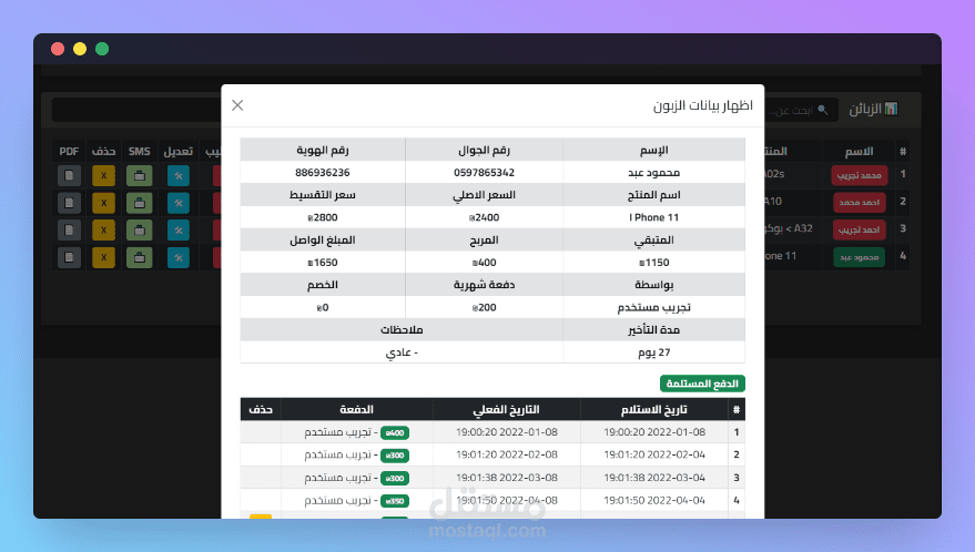 - ارسال رسائل للزبائن بقيمة الدفعة (حسب الاشتراك)