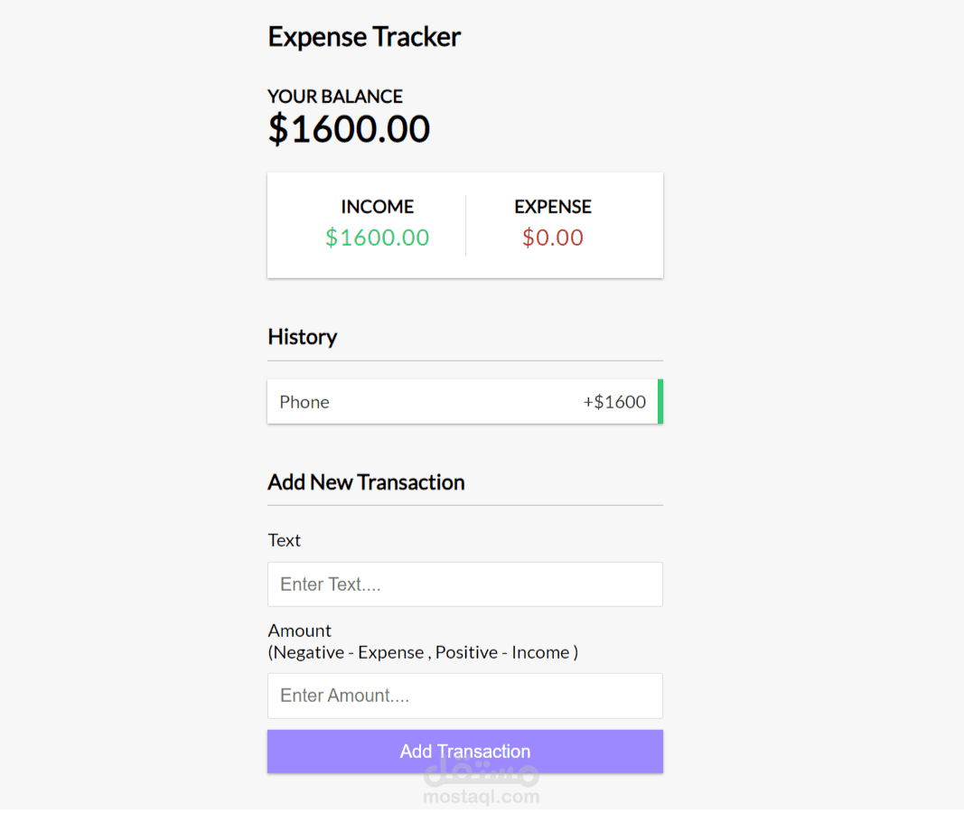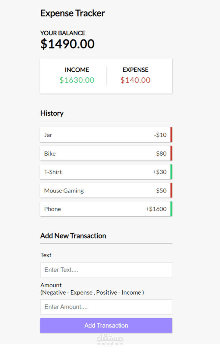 An Expanse Tracking Application , You can track your balance and your income or expanse in time