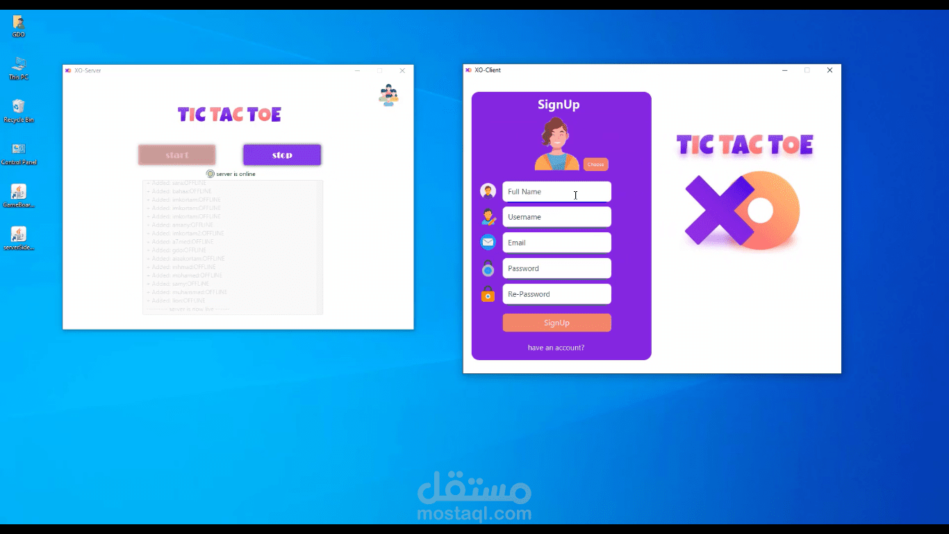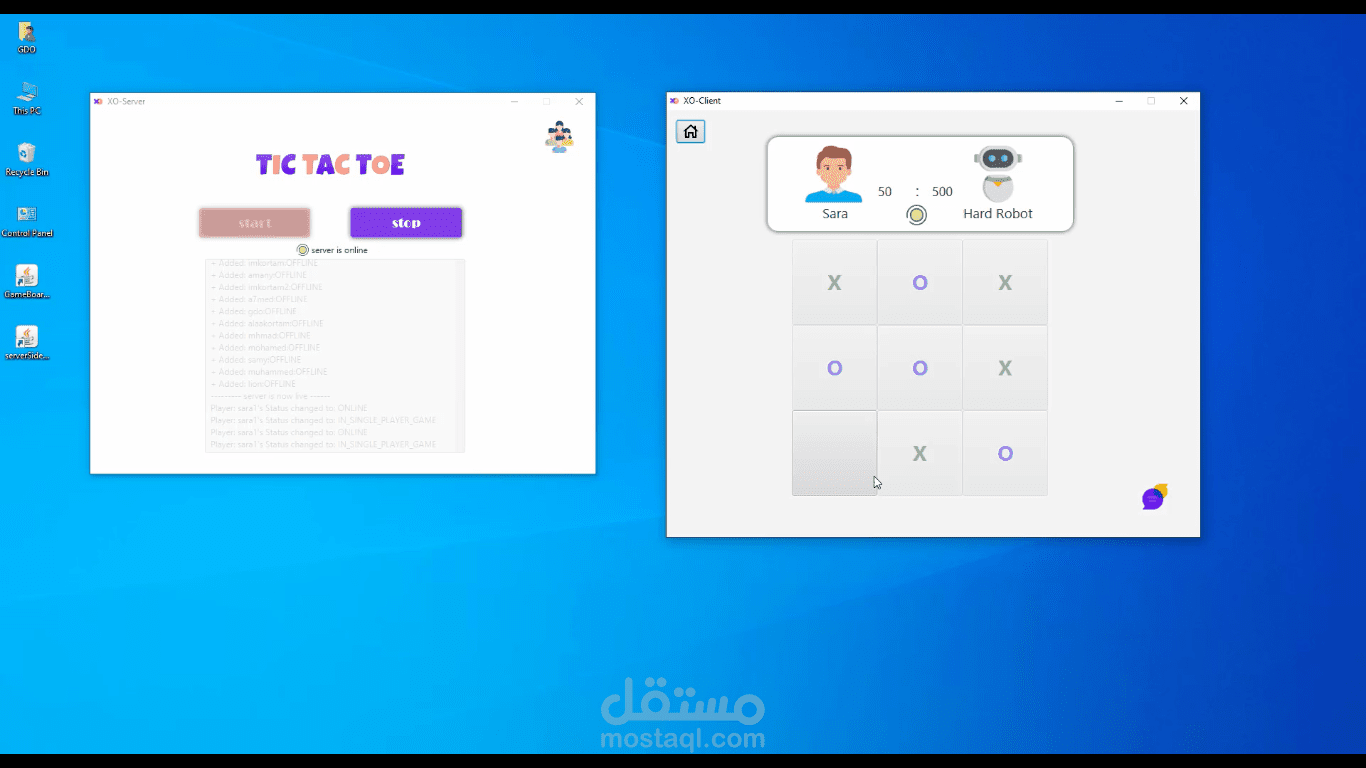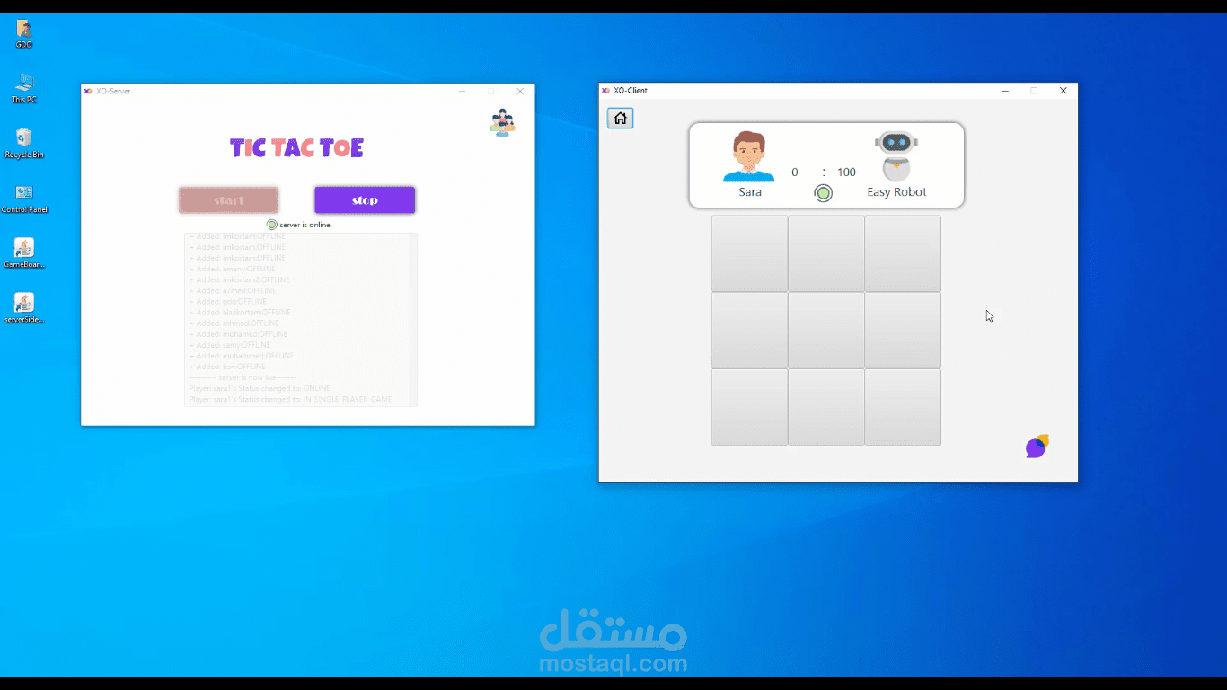 Tic Tac Toe Game is a Network-based game created and developed with java programming language based on socket programming and java database connectivity (JDBC) concepts. The game consists of two applications Server Application (hosts the game and initiates a connection with database) where you can start or stop the application. the other application is the Client application where all client actions are handled.
