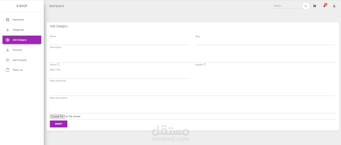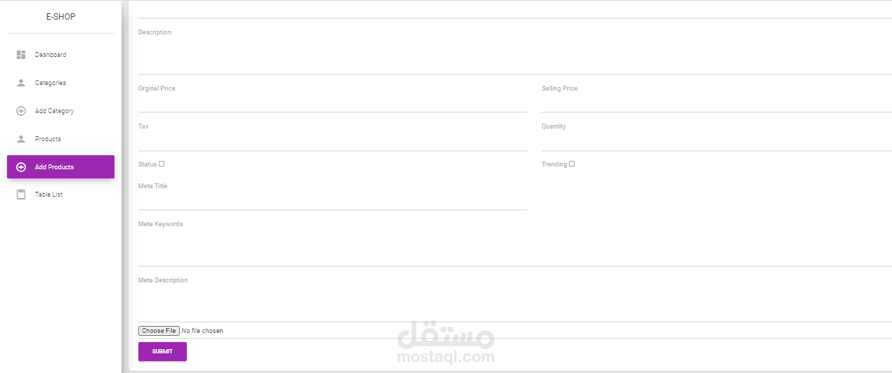 انشاء وتصميم لوحة تحكم لمتجر الكتروني وربطها مع واجهة الموقع وتحتوي على العديد من الميزات منها :