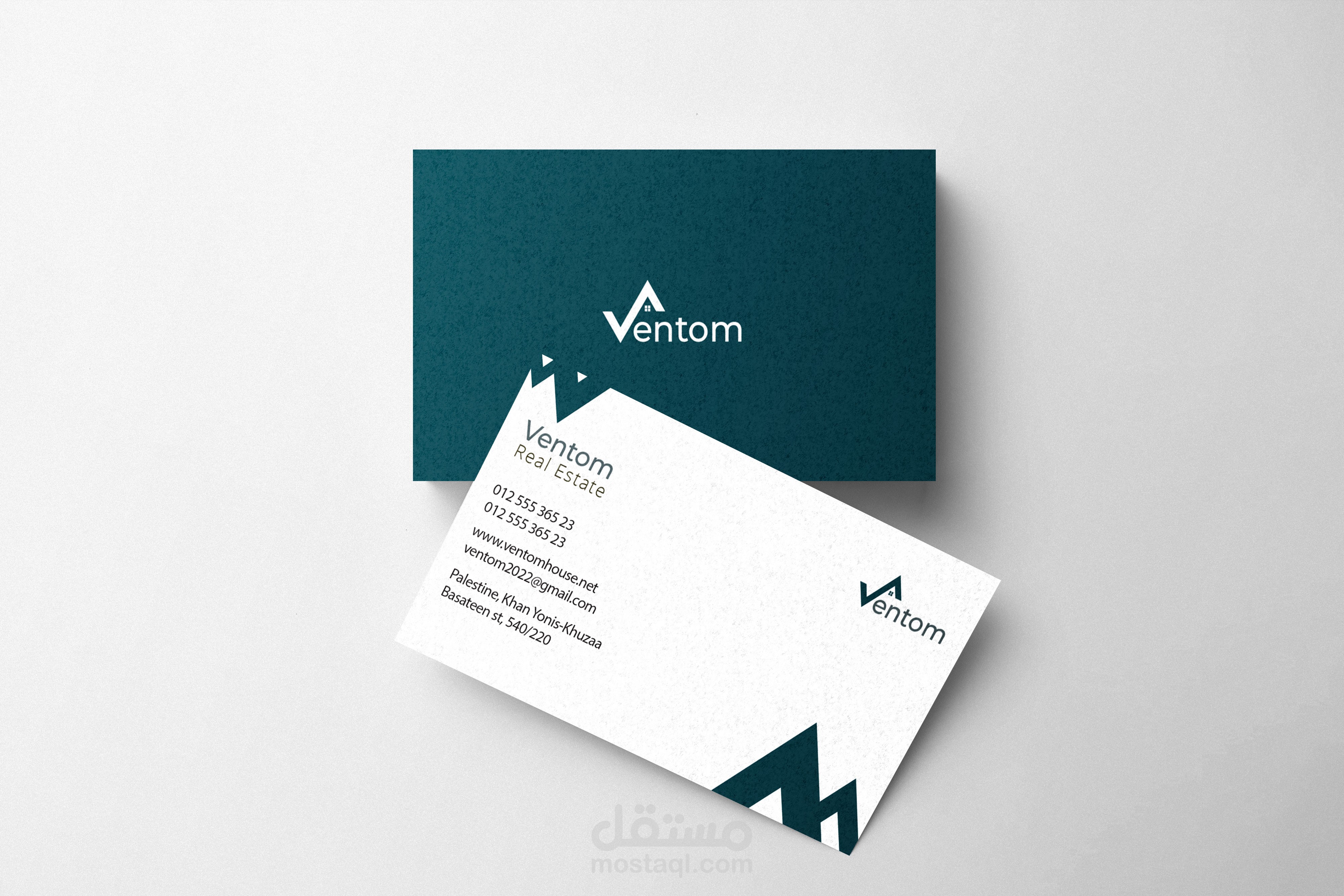 تصميم شعار وهوية بصرية لشركة ventom للعقارات، وقد تم التصميم باستخدام برنامج إليستريتور illustrator