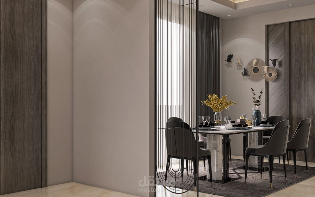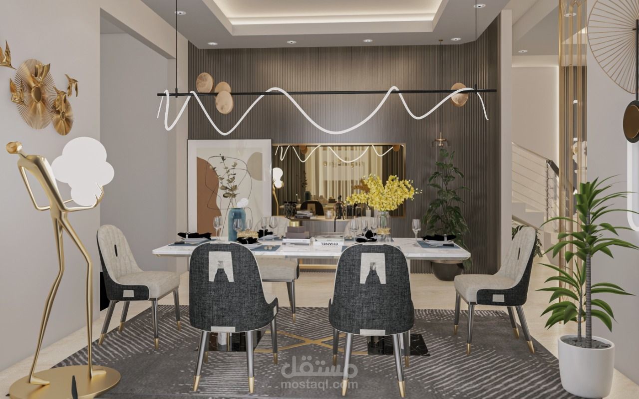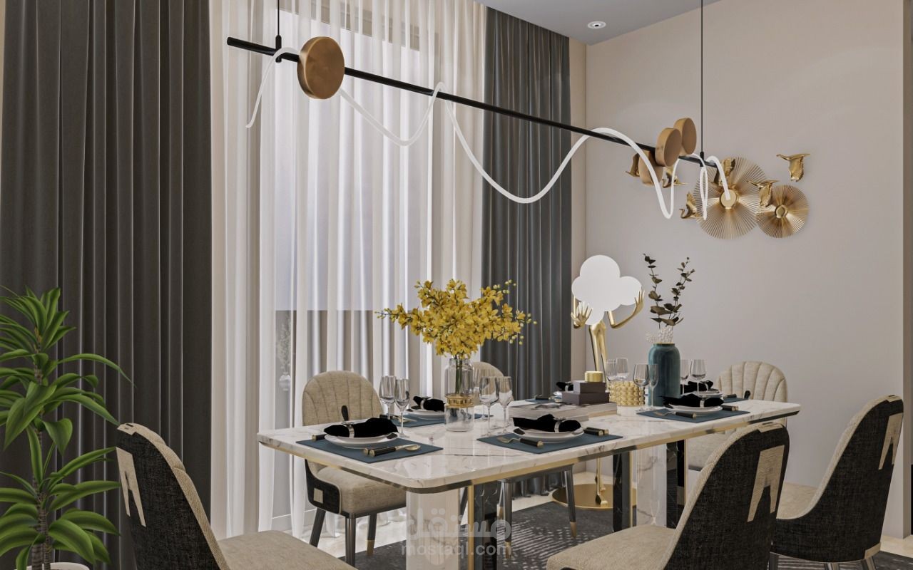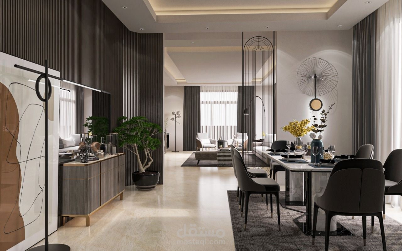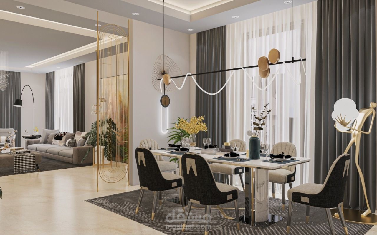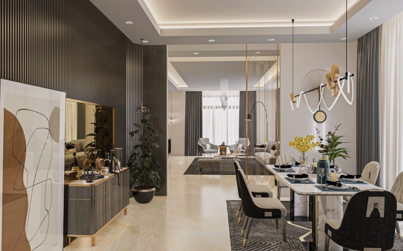 جلسة عائلية ومنطقة طعام علي الطراز الحديث مع البدائل للعميل